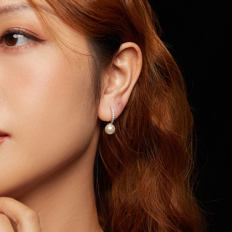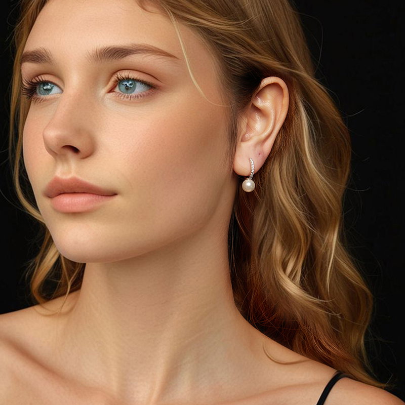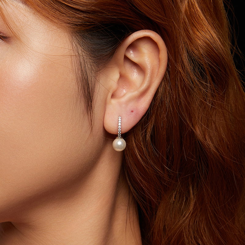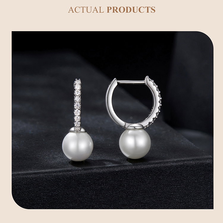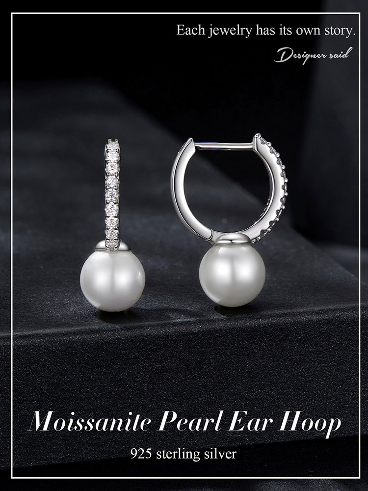 Material: Argint 925 placat cu rodiu, Perle prelucrate din scoica (imitatii), Moissanit
