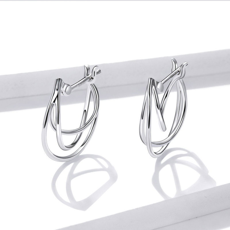 Cercei argint fire tesute. Materiale: Argint 925, Placat cu Rodiu. Culoare: Argintiu. Inaltime x Latime: 1,3 x 0,3 cm
