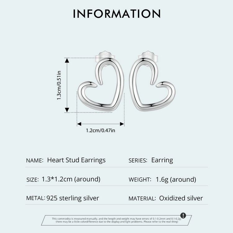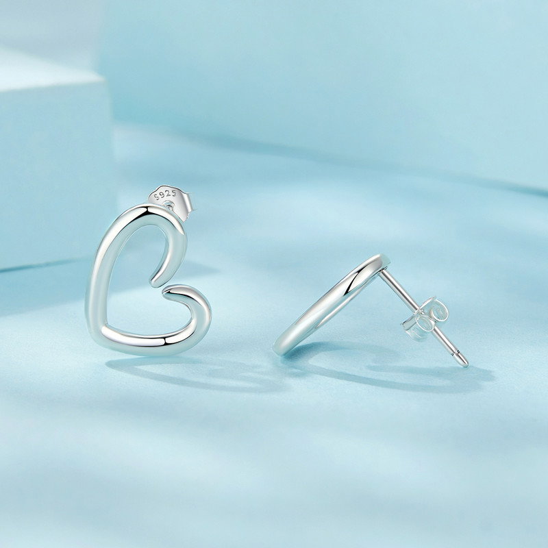 Cercei argint inima. Dimensiuni: 1,3 x 1,2 cm. Material: Argint 925. Culoare: Argintiu. Pietre: Fara pietre. Greutate: 1,6 grame .