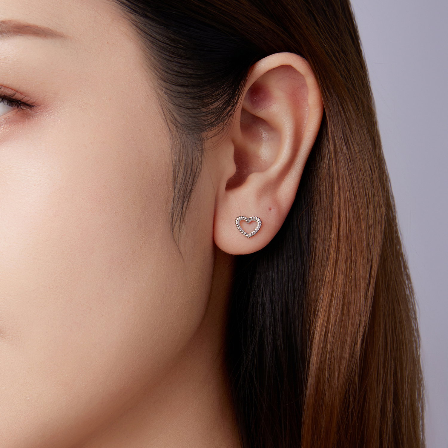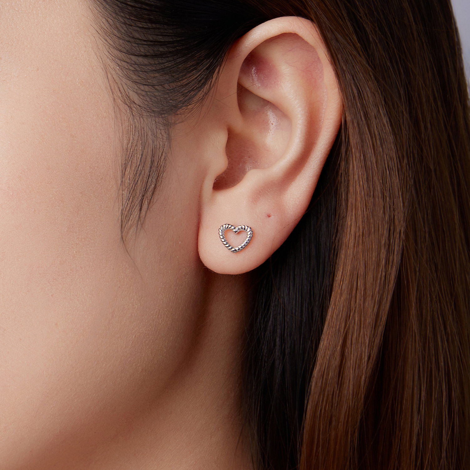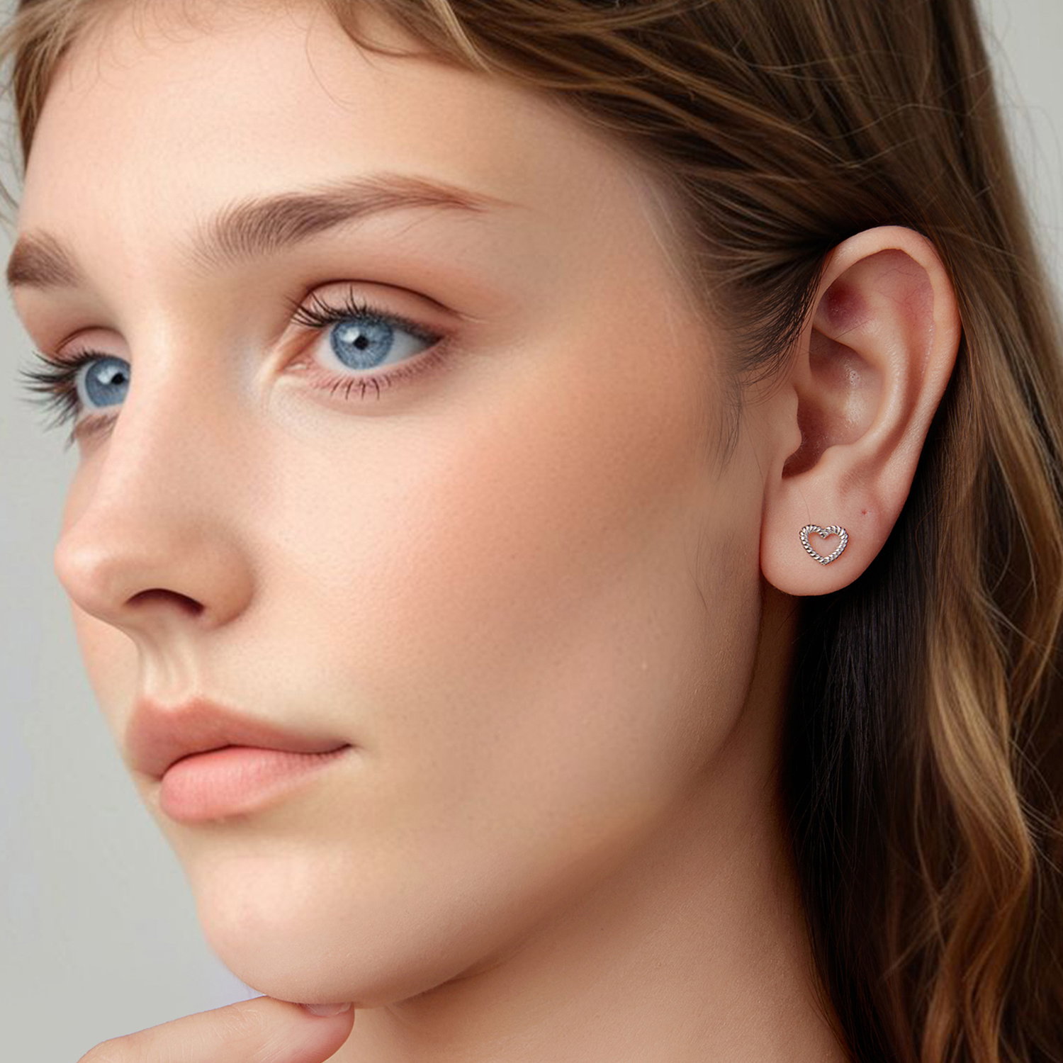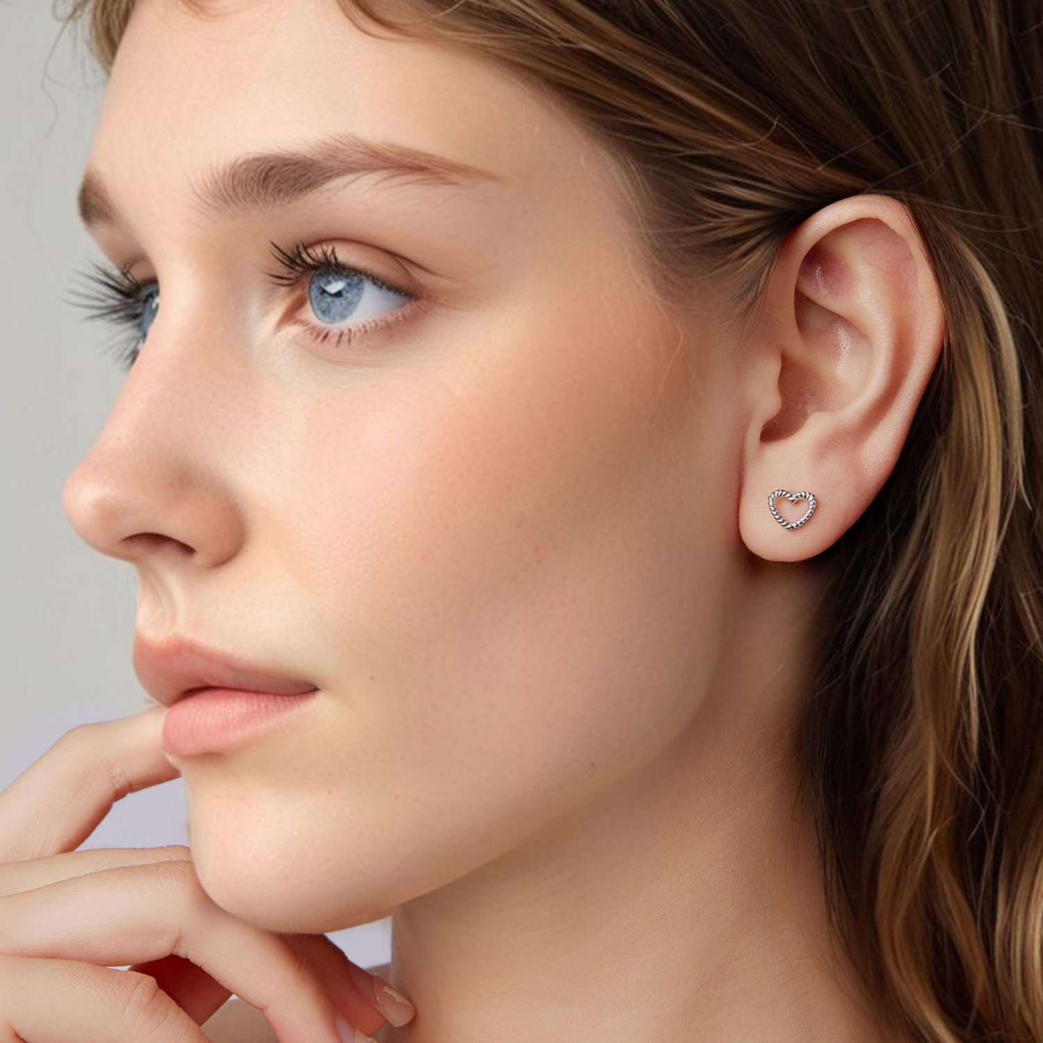 Forma de inimioara impletita da acestor cercei o nota jucausa si romantica, fara sa ii faca prea prea evidenti. Liniile rasucite adauga textura si volum, iar prinderea cu surub ii face comozi pentru purtare zilnica. Realizati din Argint 925 placat cu rodiu, cerceii au un aspect curat si luminos, usor de integrat in tinute casual sau feminine. Sunt genul de detaliu mic care indulceste discret o camasa alba, un pulover fin sau o rochie simpla.
