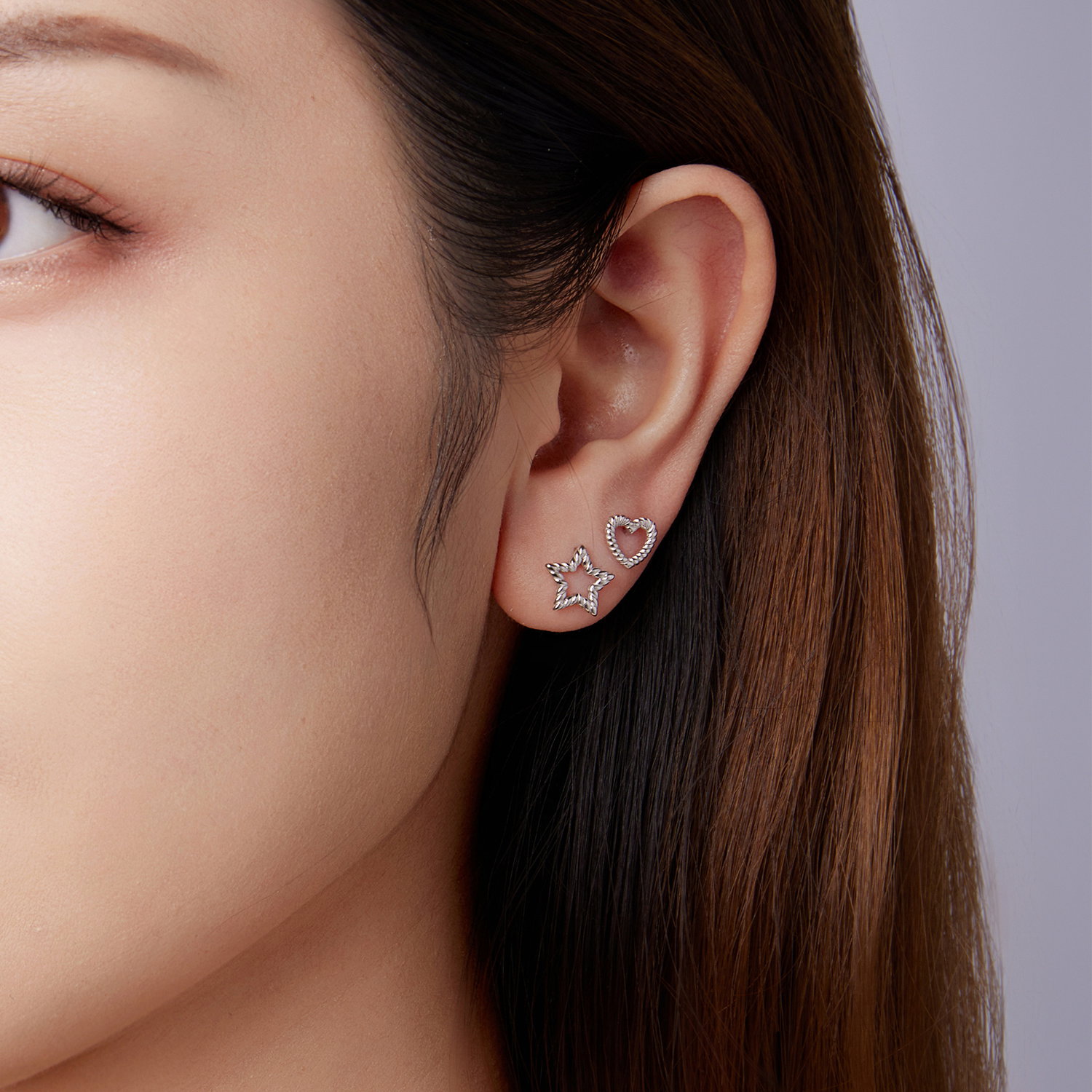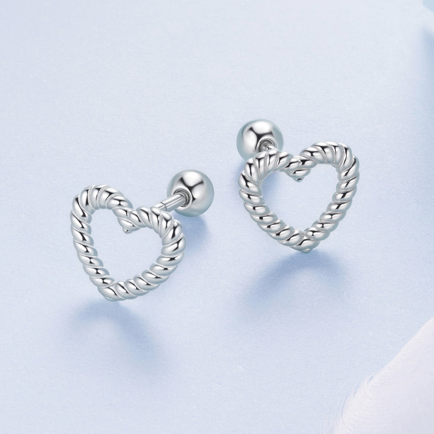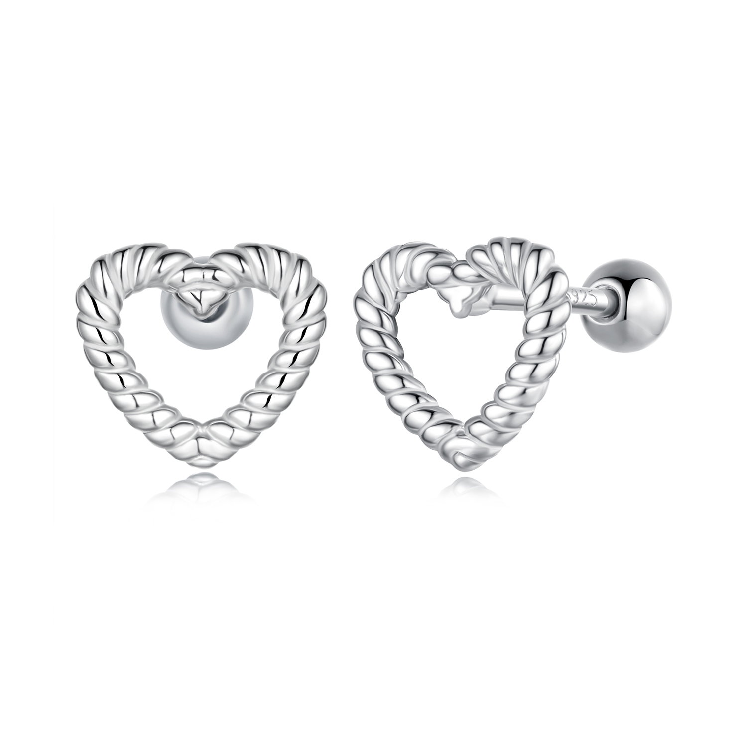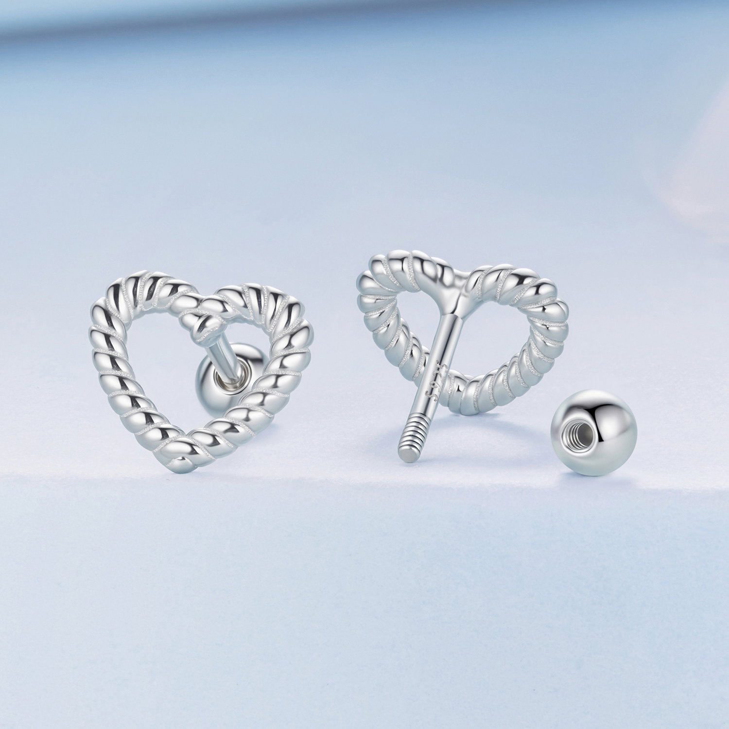 Forma de inimioara impletita da acestor cercei o nota jucausa si romantica, fara sa ii faca prea prea evidenti. Liniile rasucite adauga textura si volum, iar prinderea cu surub ii face comozi pentru purtare zilnica. Realizati din Argint 925 placat cu rodiu, cerceii au un aspect curat si luminos, usor de integrat in tinute casual sau feminine. Sunt genul de detaliu mic care indulceste discret o camasa alba, un pulover fin sau o rochie simpla.