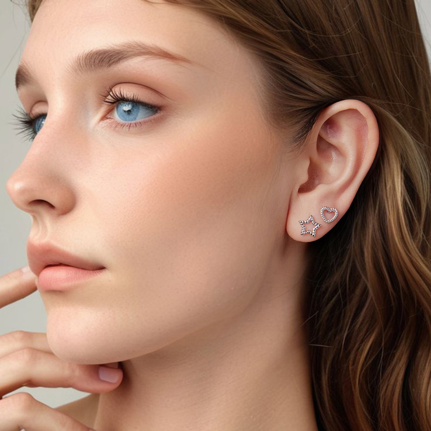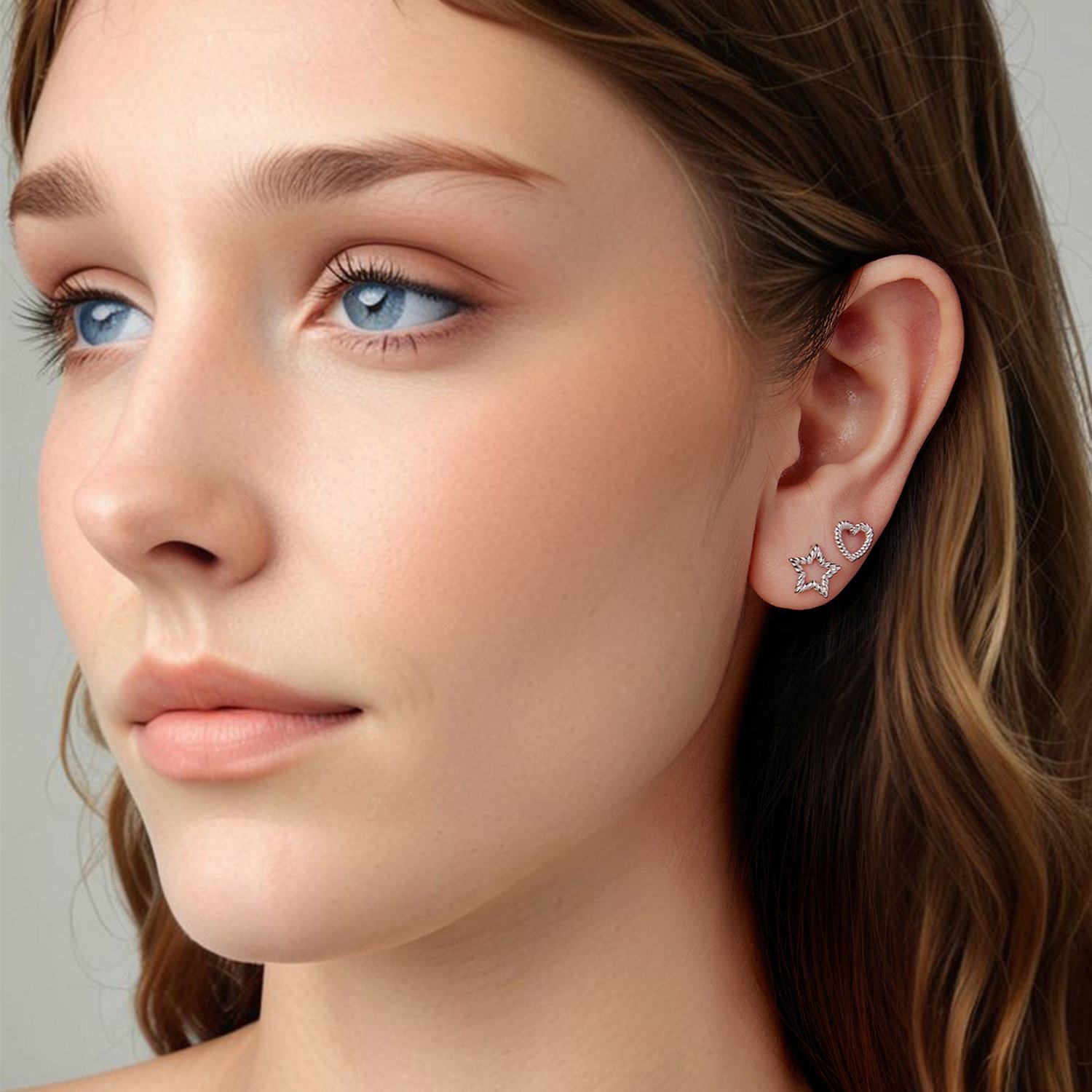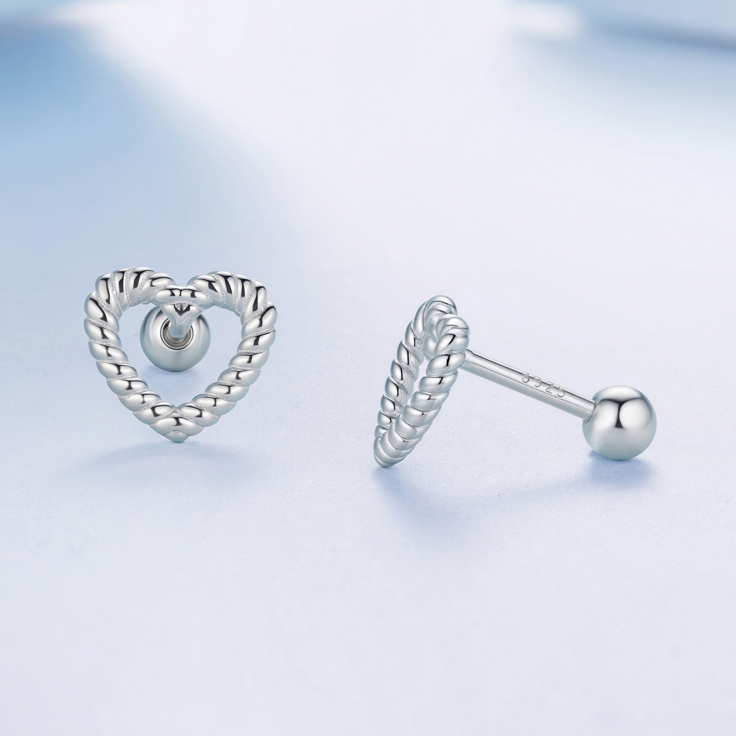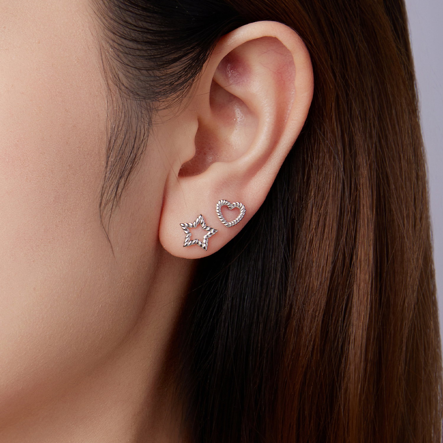 Forma de inimioara impletita da acestor cercei o nota jucausa si romantica, fara sa ii faca prea prea evidenti. Liniile rasucite adauga textura si volum, iar prinderea cu surub ii face comozi pentru purtare zilnica. Realizati din Argint 925 placat cu rodiu, cerceii au un aspect curat si luminos, usor de integrat in tinute casual sau feminine. Sunt genul de detaliu mic care indulceste discret o camasa alba, un pulover fin sau o rochie simpla.