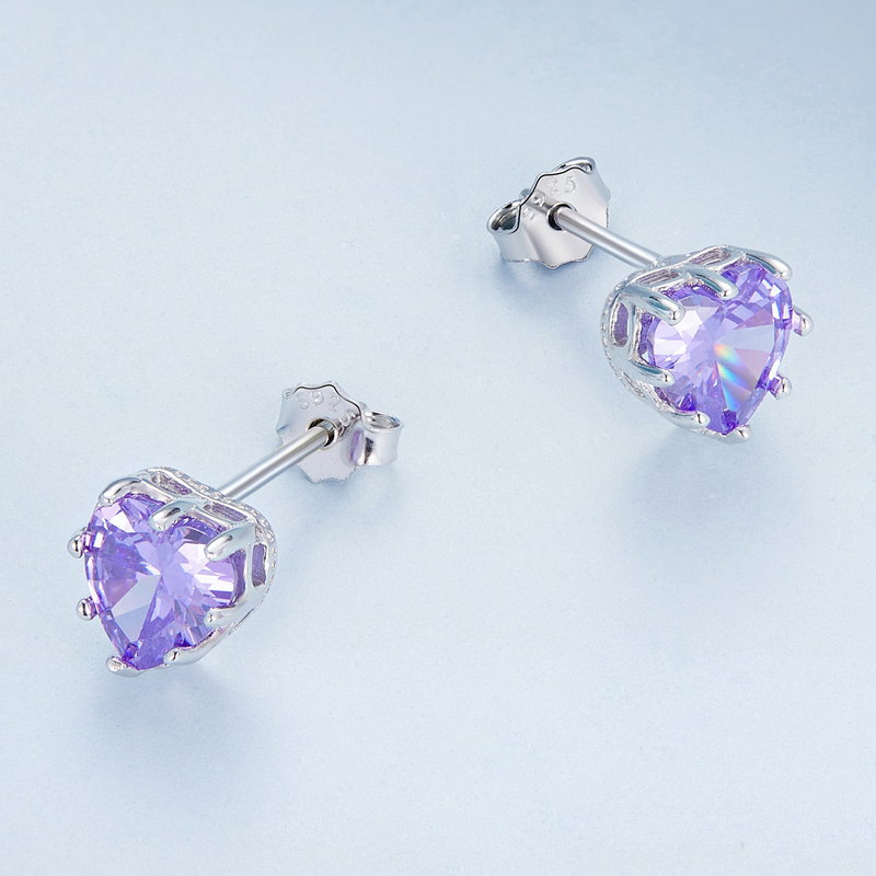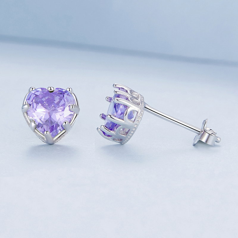Un detaliu delicat, in forma de inima, straluceste cu nuante de violet, aducand un strop de culoare si eleganta in orice tinuta. Cerceii din argint 925 sunt perfecti pentru a adauga un accent de feminitate si rafinament, fiind alegerea ideala pentru momente speciale. Fie ca ii porti la o ocazie festiva sau in viata de zi cu zi, vei simti cum increderea si bucuria te insotesc, facandu-i un cadou memorabil pentru tine sau pentru cineva drag.