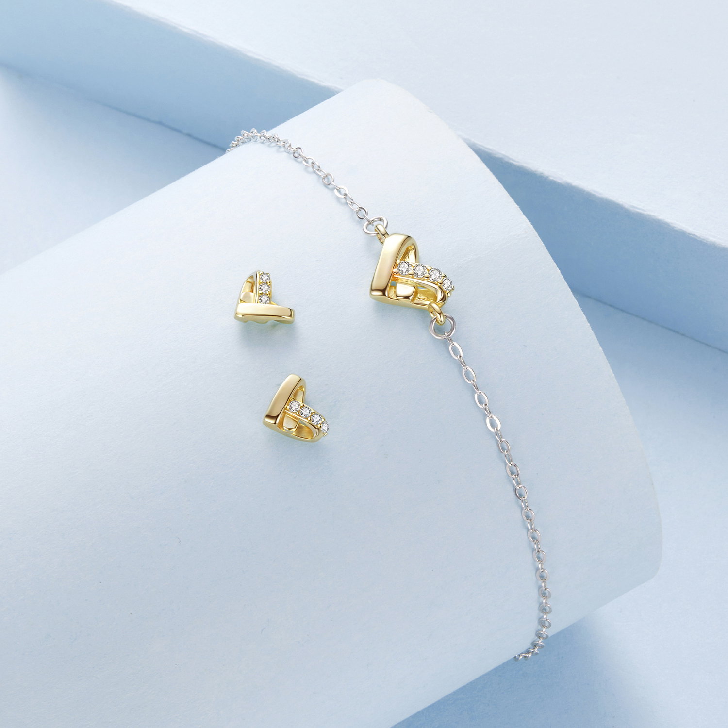 Inimioarele si accentele de Zirconia dau acestor cercei o nota delicata si luminoasa, cu un farmec feminin usor de observat. Prinderea cu surub ii face comozi pentru purtare frecventa, iar nuanta aurie aduce modelului mai multa caldura si eleganta. Realizati din Argint 925 placat cu aur si Zirconia, cerceii au un aspect bine echilibrat, usor de integrat in tinute romantice sau de zi. Sunt potriviti atunci cand vrei o pereche mica, stralucitoare si expresiva, dar fara sa para prea incarcata.