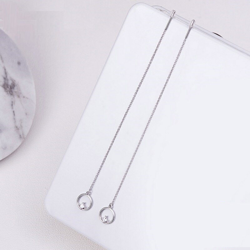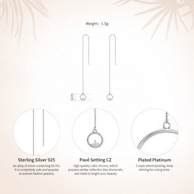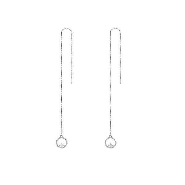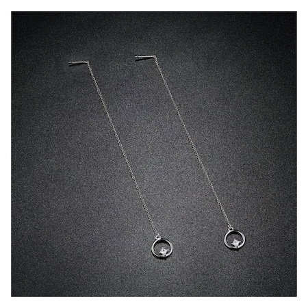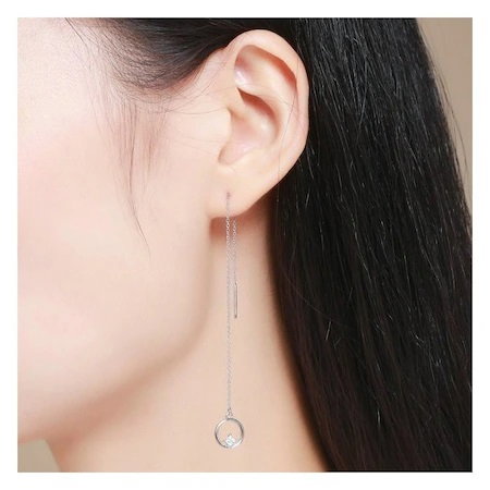Cercei argint lungi cu cercuri. Dimensiuni: Diametru cerc: 1 cm, Lungime totala: 12,5 cm. Materiale: Argint 925 placat cu rodiu, Zirconiu. Placaj: Rodiu. Greutate: 1,5 grame. Ambalaj: Cutiuta bijuterii.
