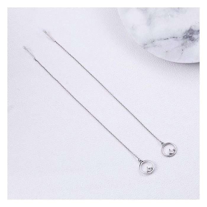 Cercei argint lungi cu cercuri placati cu rodiu