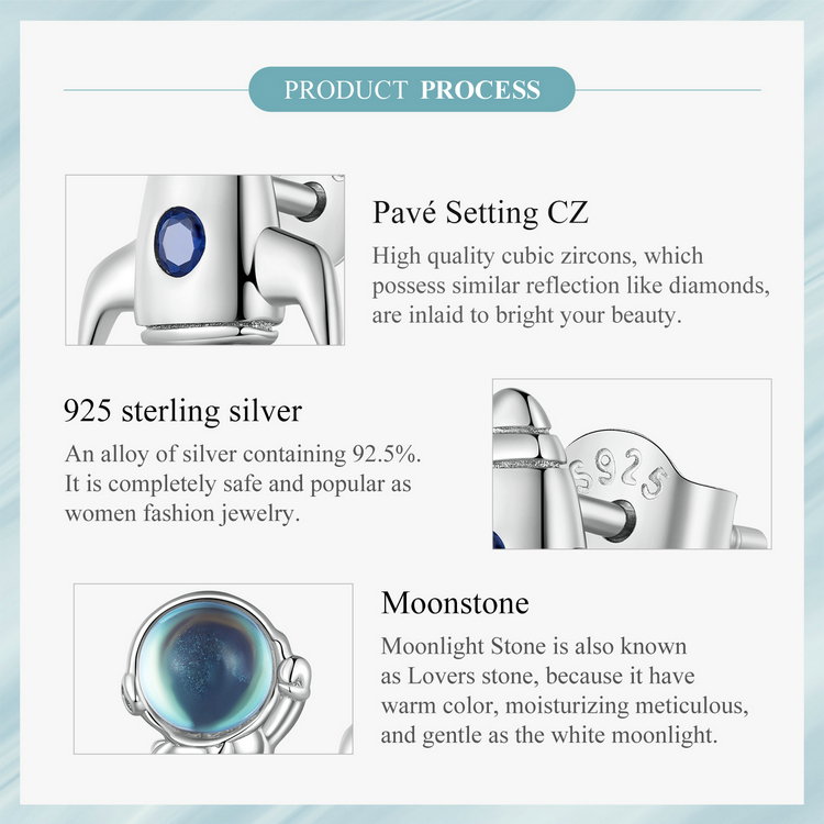 Material: Argint 925 placat cu rodiu, Zirconiu, Piatra lunii