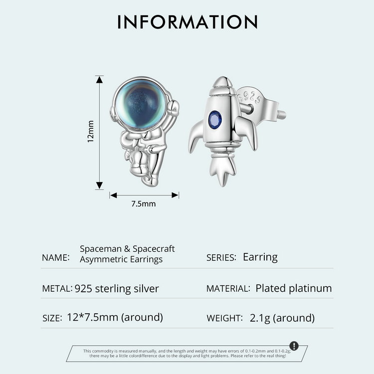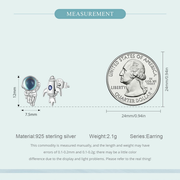 Dimensiuni: astronaut 12 x 7,5 mm, racheta 11 x 9 mm, Greutate 2,1 grame