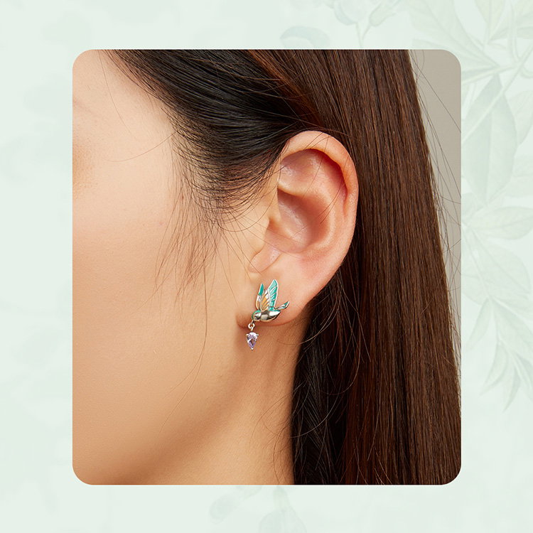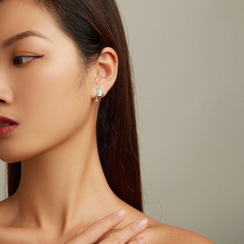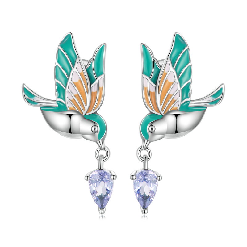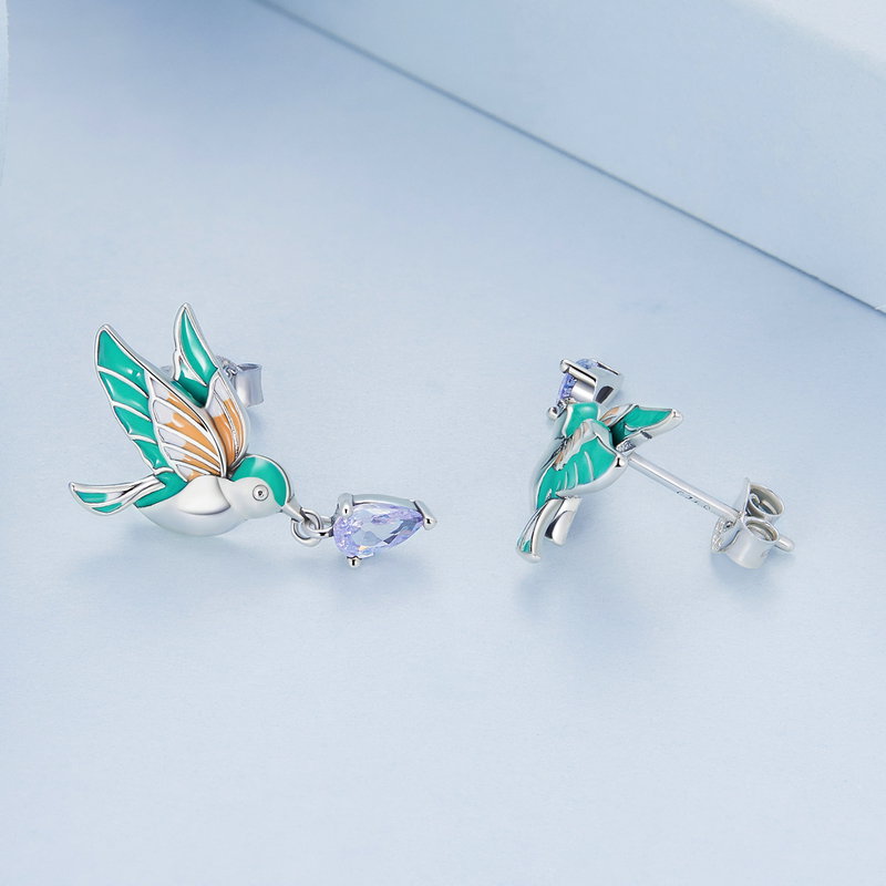 Un dans delicat al culorilor se desfasoara in jurul acestor cercei inspirati de pasari colibri, ce aduc un strop de bucurie in orice tinuta. Detaliile fine ale aripilor, imbracate in nuante vibrante, se completeaza perfect cu zirconii stralucitoare, creand o armonie vizuala deosebita. Fie ca alegi sa ii porti la o ocazie speciala sau in fiecare zi, vei simti cum increderea si feminitatea te insotesc. Acesti cercei sunt cadoul ideal pentru a transmite un mesaj de apreciere si dragoste.