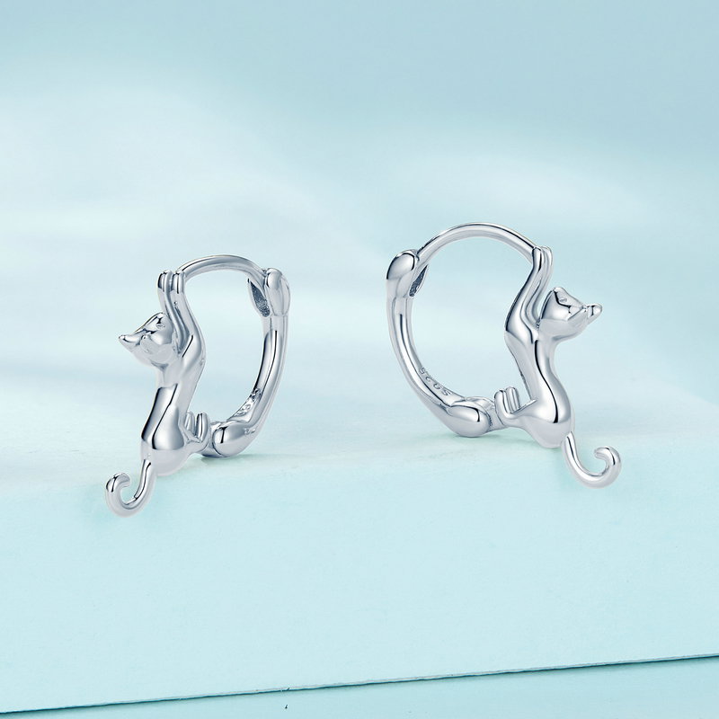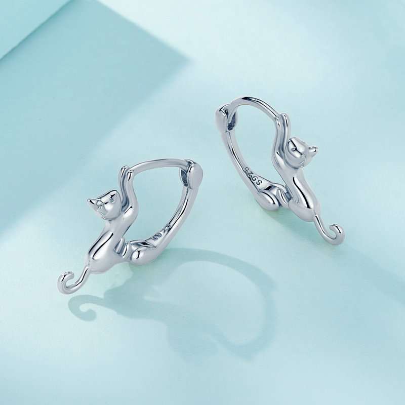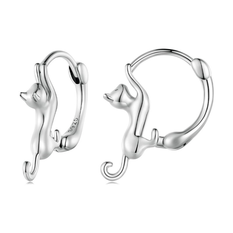 Cercei argint pisicute. Materiale: Argint 925. Culoare: Argintiu. Inaltime x Latime: 1,8 x 0,3m, Diametru interior: 1,1 cm, Greutate: 3.2 grame.
