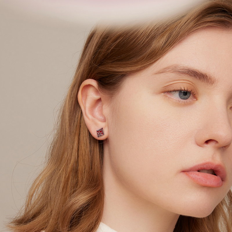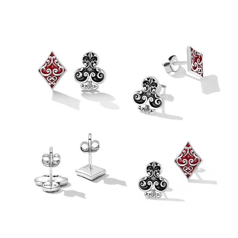 Cercei argint Romb si Trefla. Materiale: Argint 925, Email. Dimensiuni: Inaltime x Latime: Trefla: 1,2 x 1,0 cm, Romb: 1,15 x 0,85 cm.