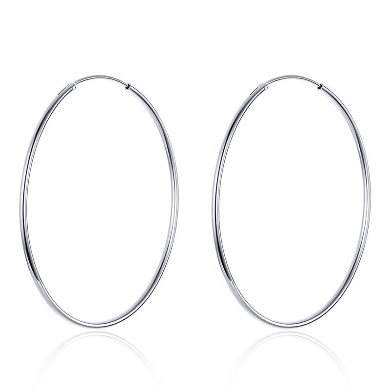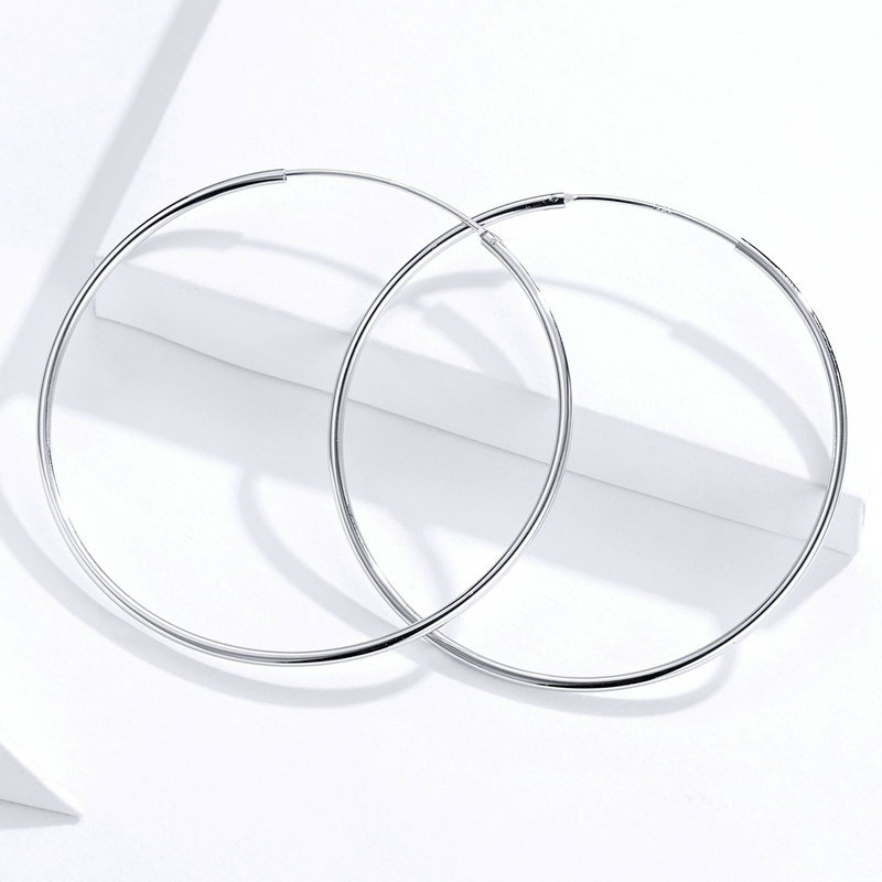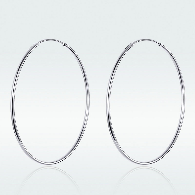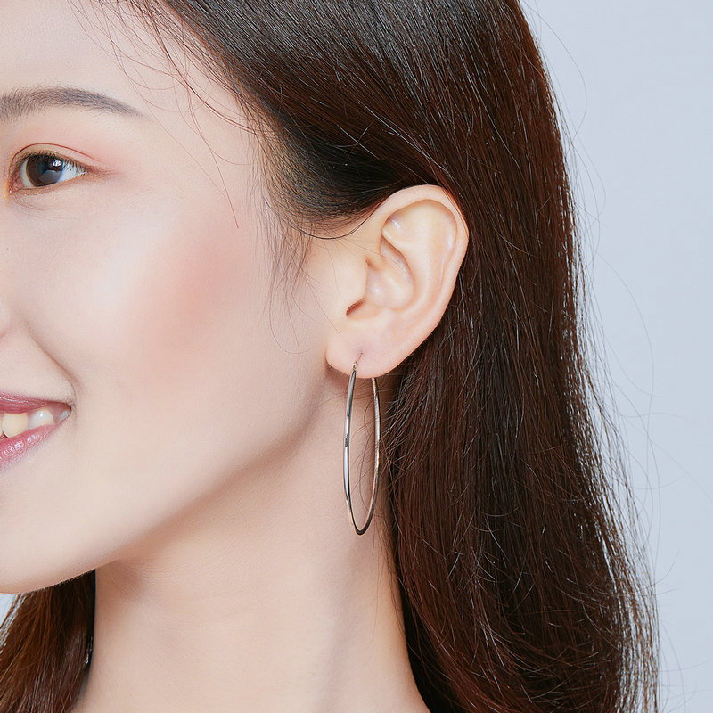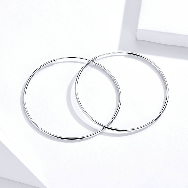 Cercei argint rotunzi cu diametrul de 5 cm . Materiale: Argint 925, Placat cu Rodiu. Culoare: Argintiu. Diametru cercei: 5 cm, Greutate: 3.1 grame.