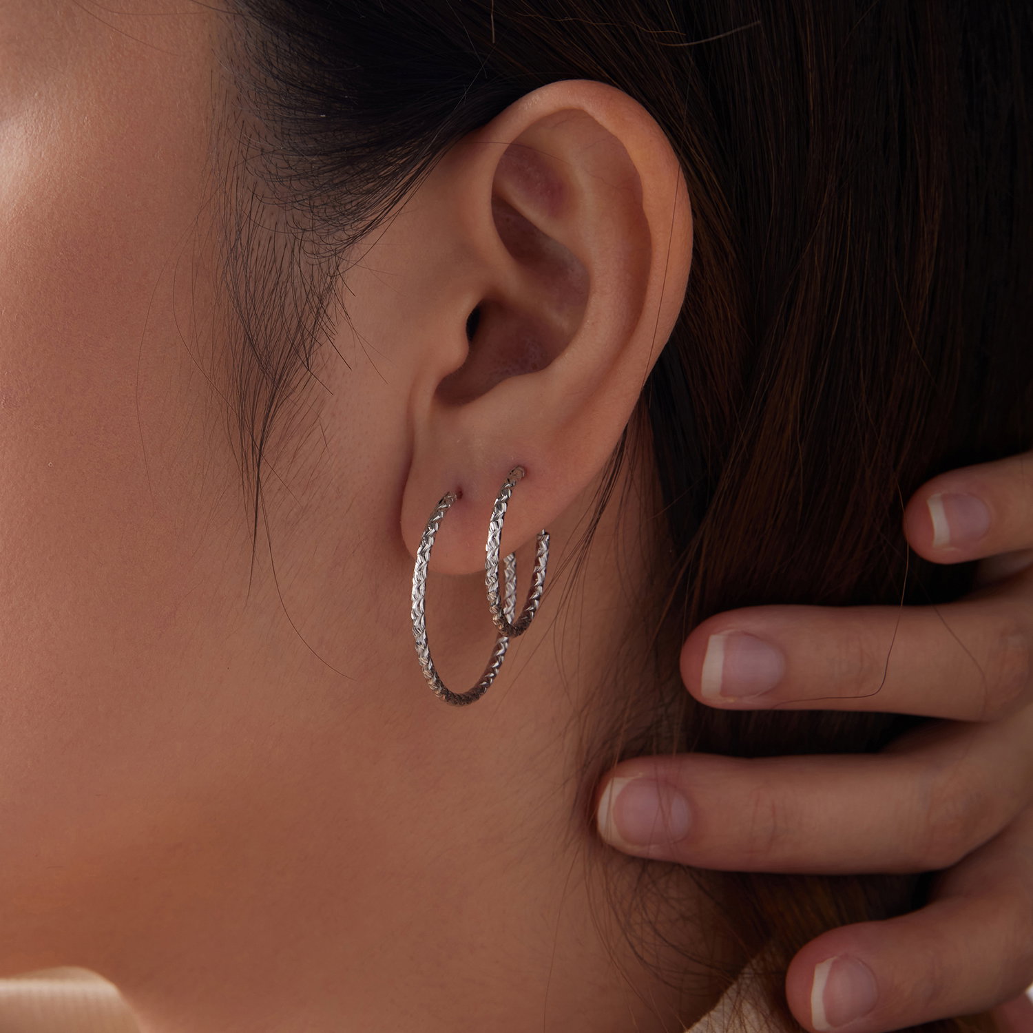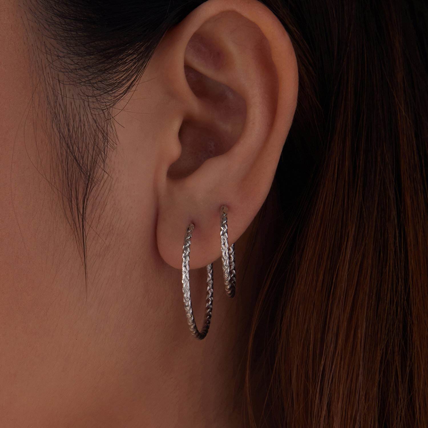 Modelul gravat da acestor cercei rotunzi mai multa textura si ii scoate imediat din zona cercurilor simple. Forma ramane clasica si usor de purtat, dar suprafata decorata face ca lumina sa se aseze mai frumos pe metal si sa dea cerceilor mai multa personalitate. Realizati din Argint 925 placat cu rodiu, cerceii au un aspect curat, feminin si bine definit. Se potrivesc foarte bine in tinute casual sau elegante, atunci cand vrei o pereche versatila, dar cu un plus de detaliu.