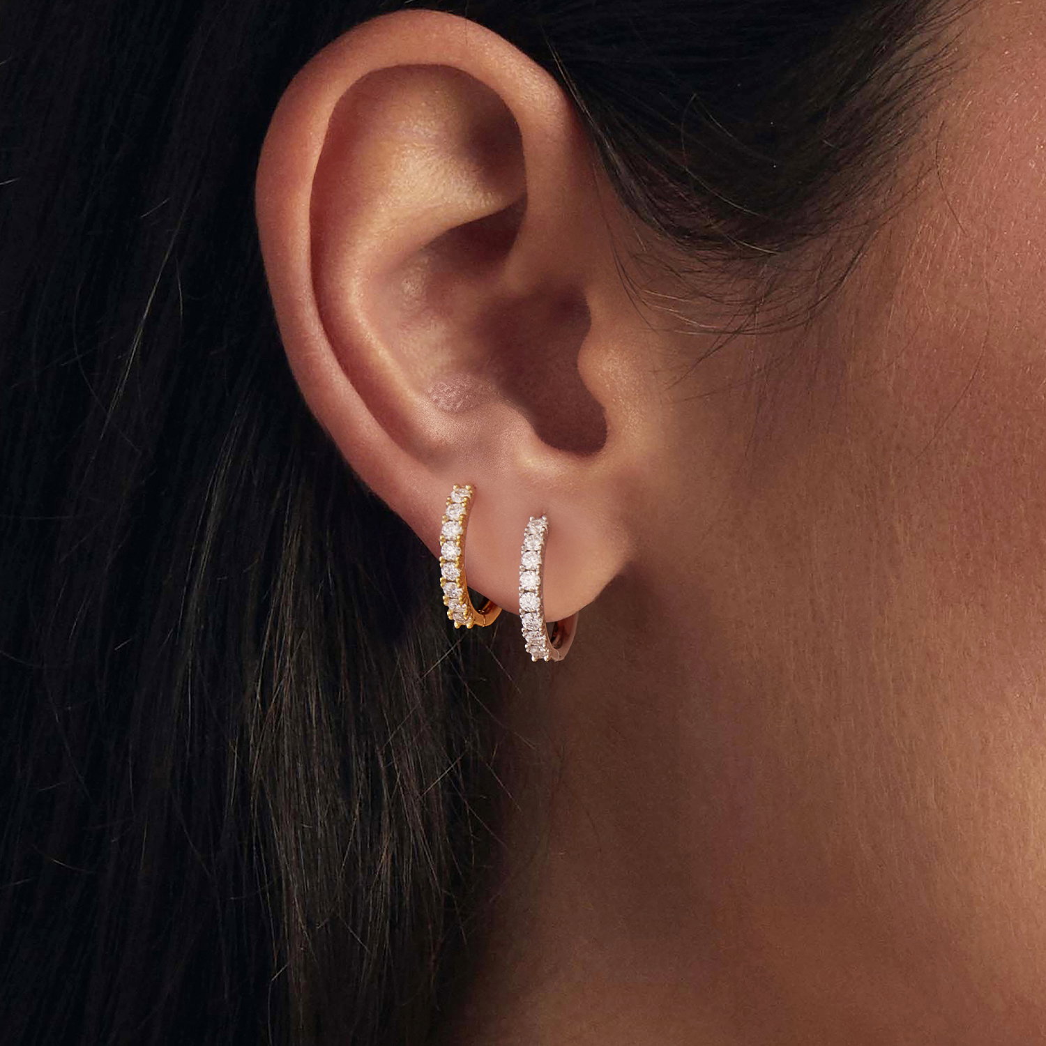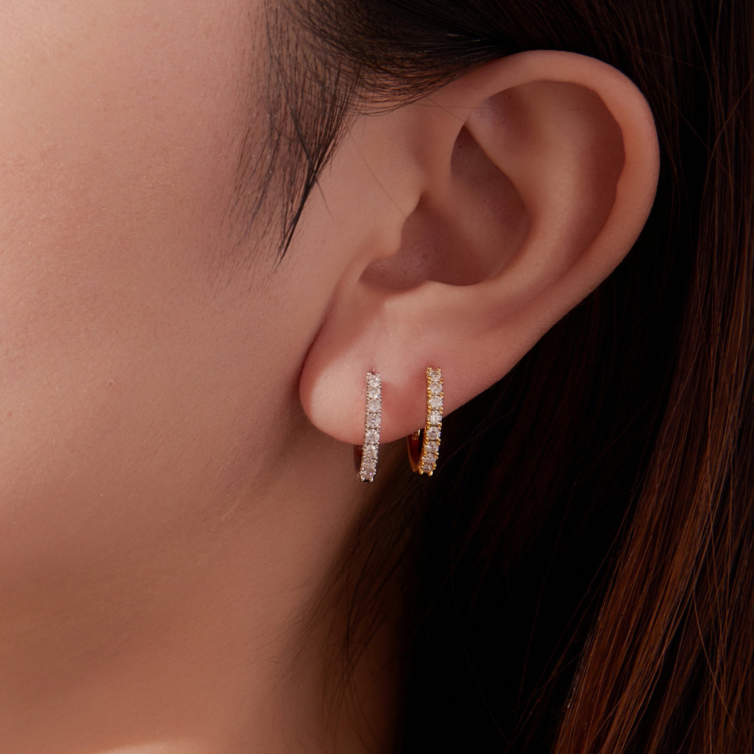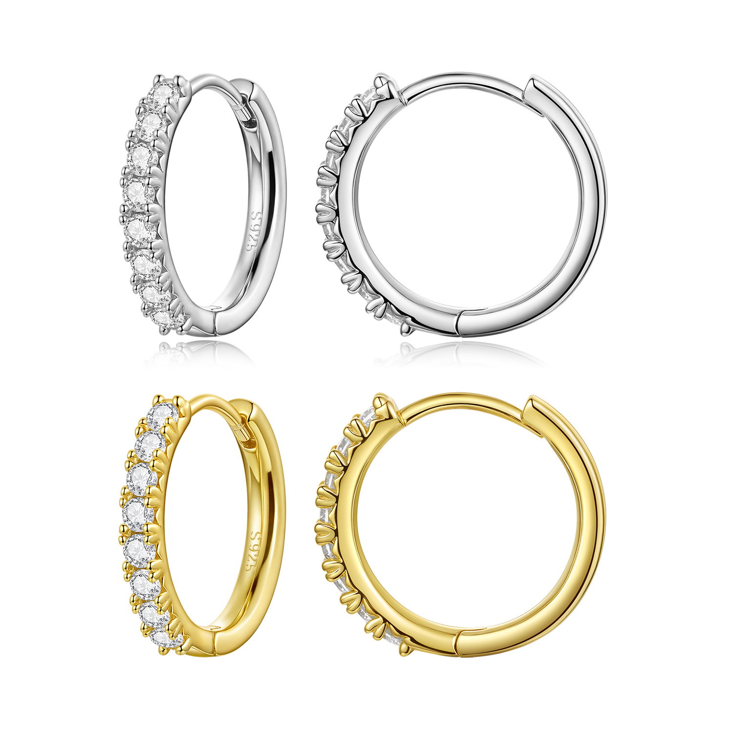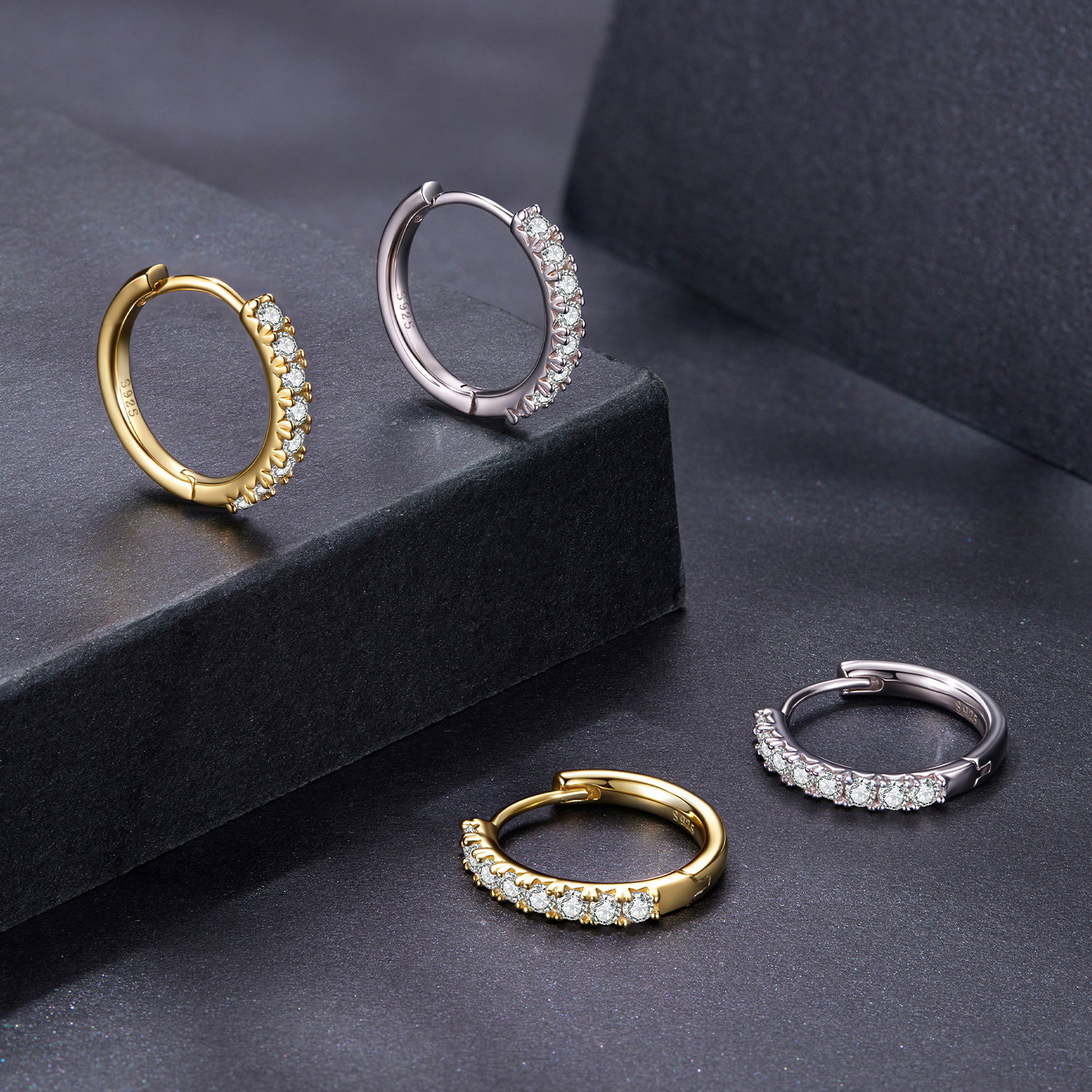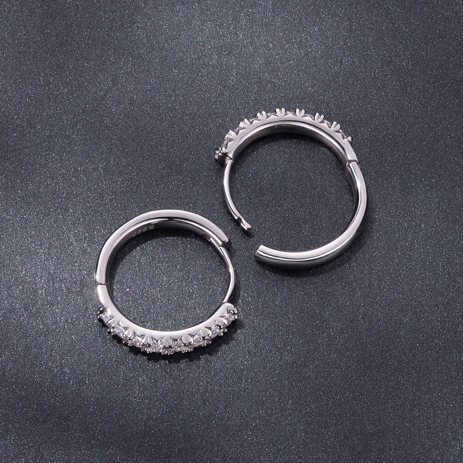 Cercei argint rotunzi cu Moissanit. Dimensiuni: 1,6 x 0,2 cm, Diametru interior: 1,3 cm, Moissanit: 2 mm/0,03 ct, Greutate: 2,6 grame. Materiale: Argint 925, placat cu rodiu, Moissanit. Pietre: Moissanit. Culoare: Argintiu.