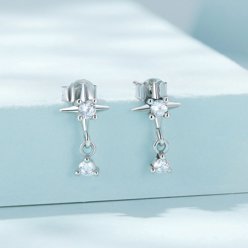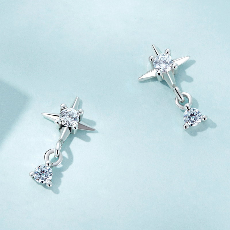 Intr-o seara speciala, cerceii cu forma de stelute aduc un strop de magie in orice tinuta. Finisajul elegant si detaliile delicate, accentuate de zirconii stralucitoare, transforma acest accesoriu intr-o alegere inspirata pentru a exprima feminitatea si rafinamentul. Fie ca ii porti la o petrecere sau la o intalnire, vei simti cum increderea si stralucirea te insotesc. Alege acest cadou pentru a aduce bucurie si un zambet pe chipul persoanei dragi.
