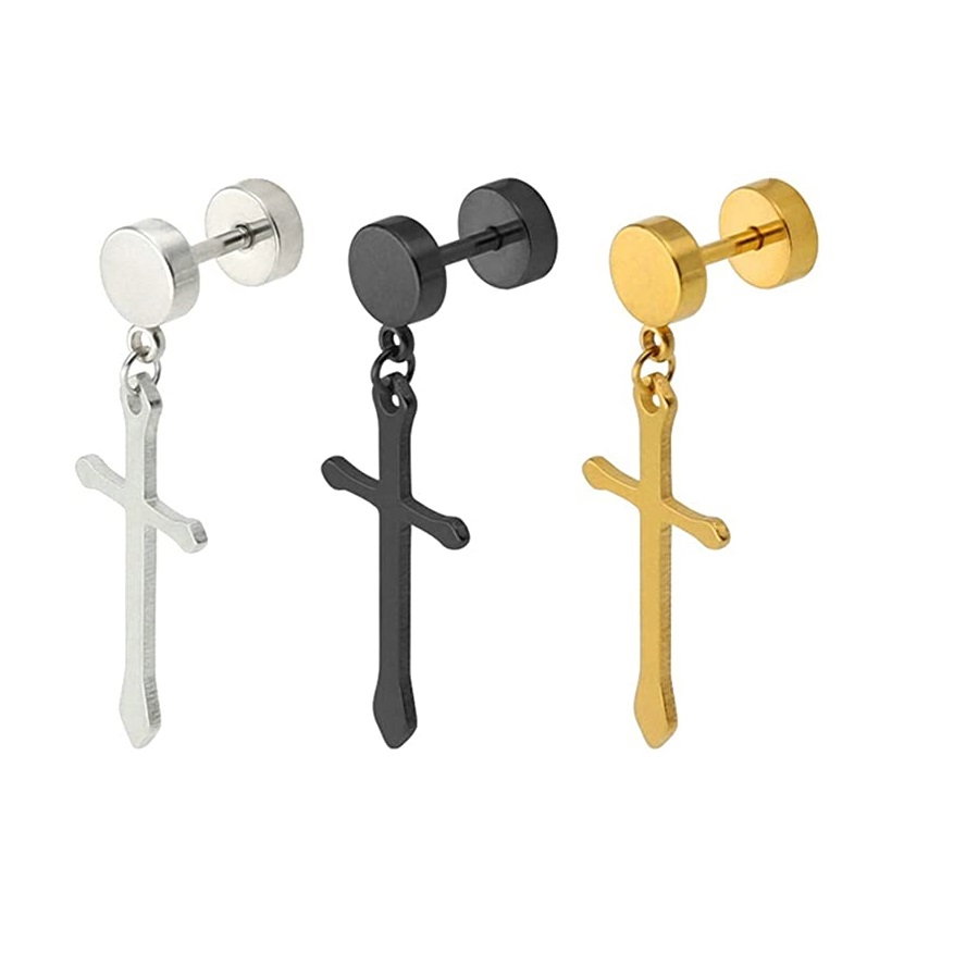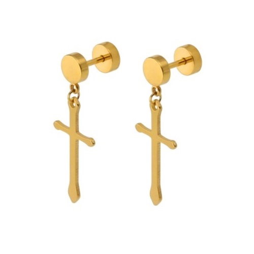 Cercei aurii din otel inoxidabil, cu cruciulite. Sistem inchidere: surub. Dimensiuni: 3,3 x 1,3 cm. Produs fabricat din inox de cea mai buna calitate, fapt ce-i confera o rezistenta crescuta la uzura si o perioada de utilizare indelungata.
