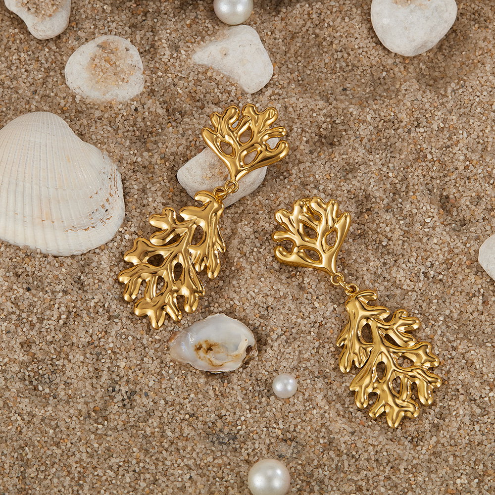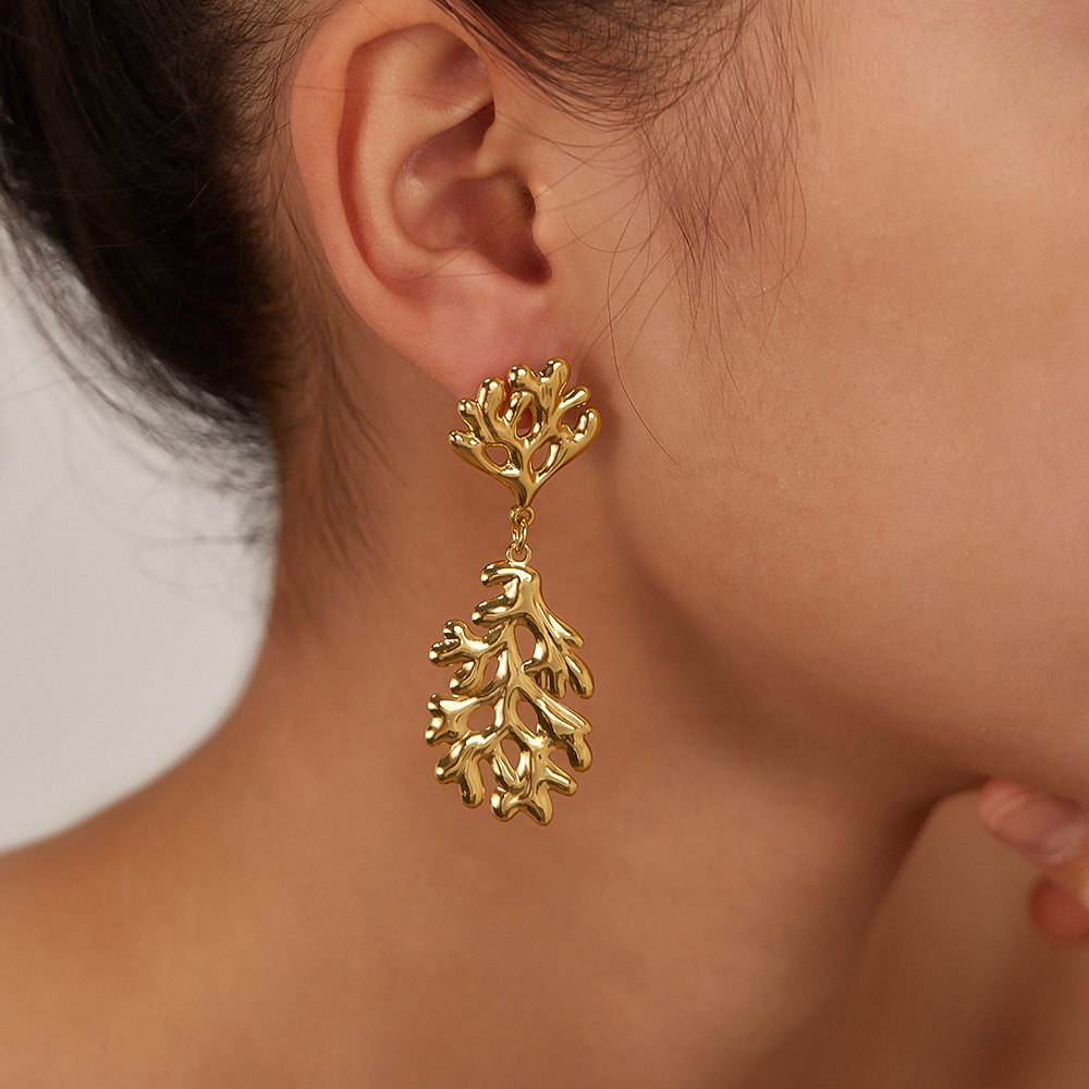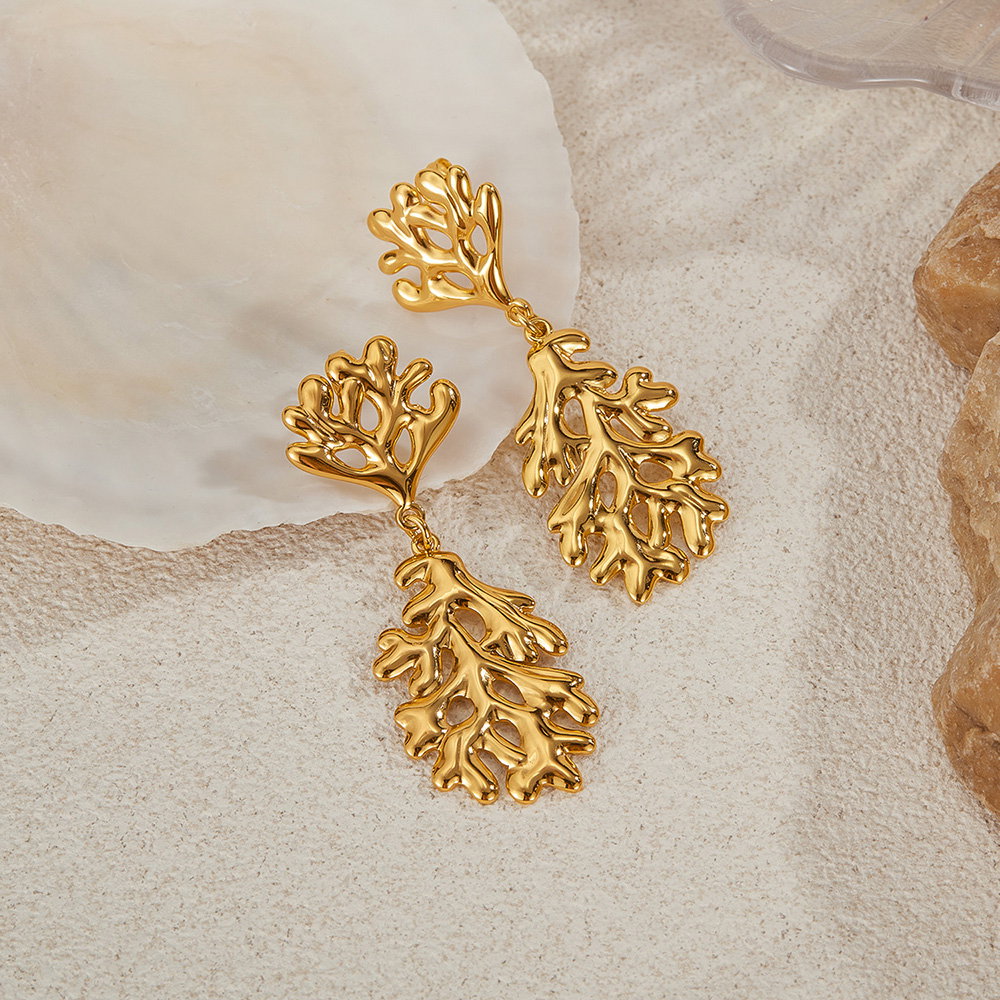 Cercei inox coral. Dimensiuni: vezi poze pentru detalii. Material: Inox. Culoare: Auriu. Pietre: Fara pietre.