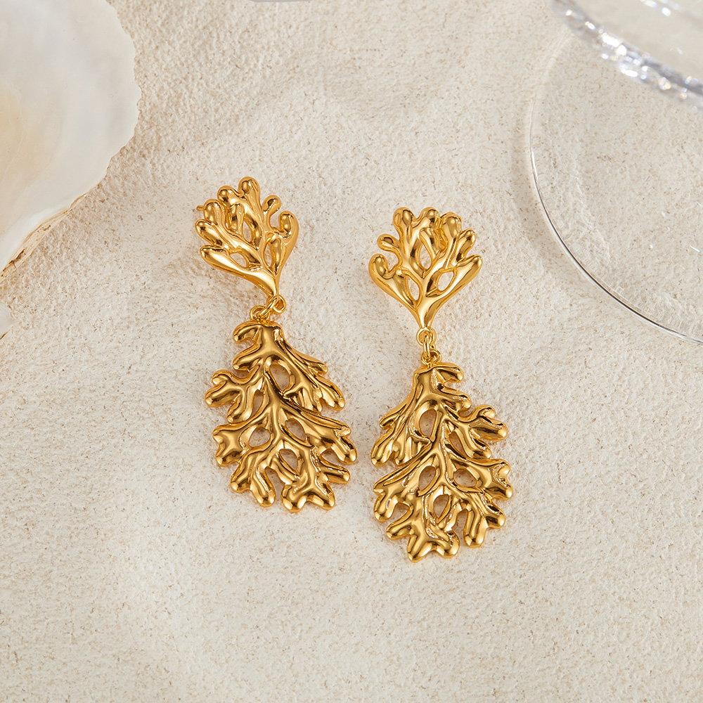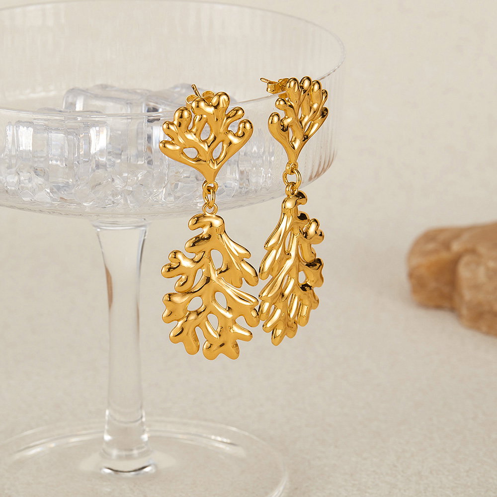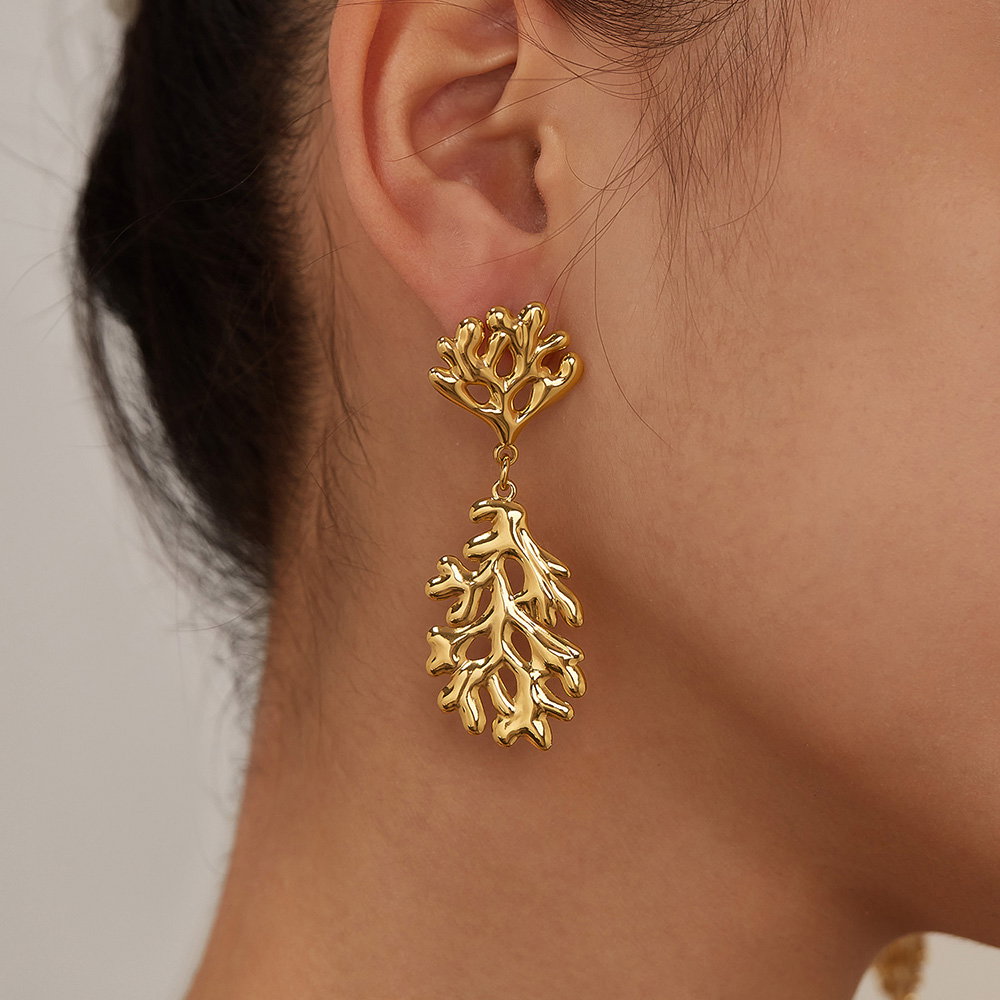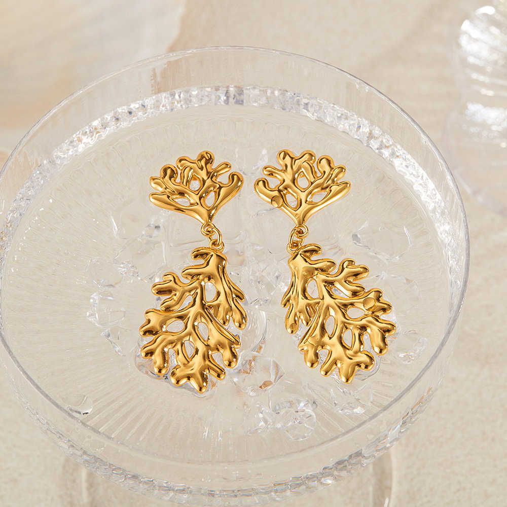 Cercei inox coral. Dimensiuni: vezi poze pentru detalii. Material: Inox. Culoare: Auriu. Pietre: Fara pietre.
