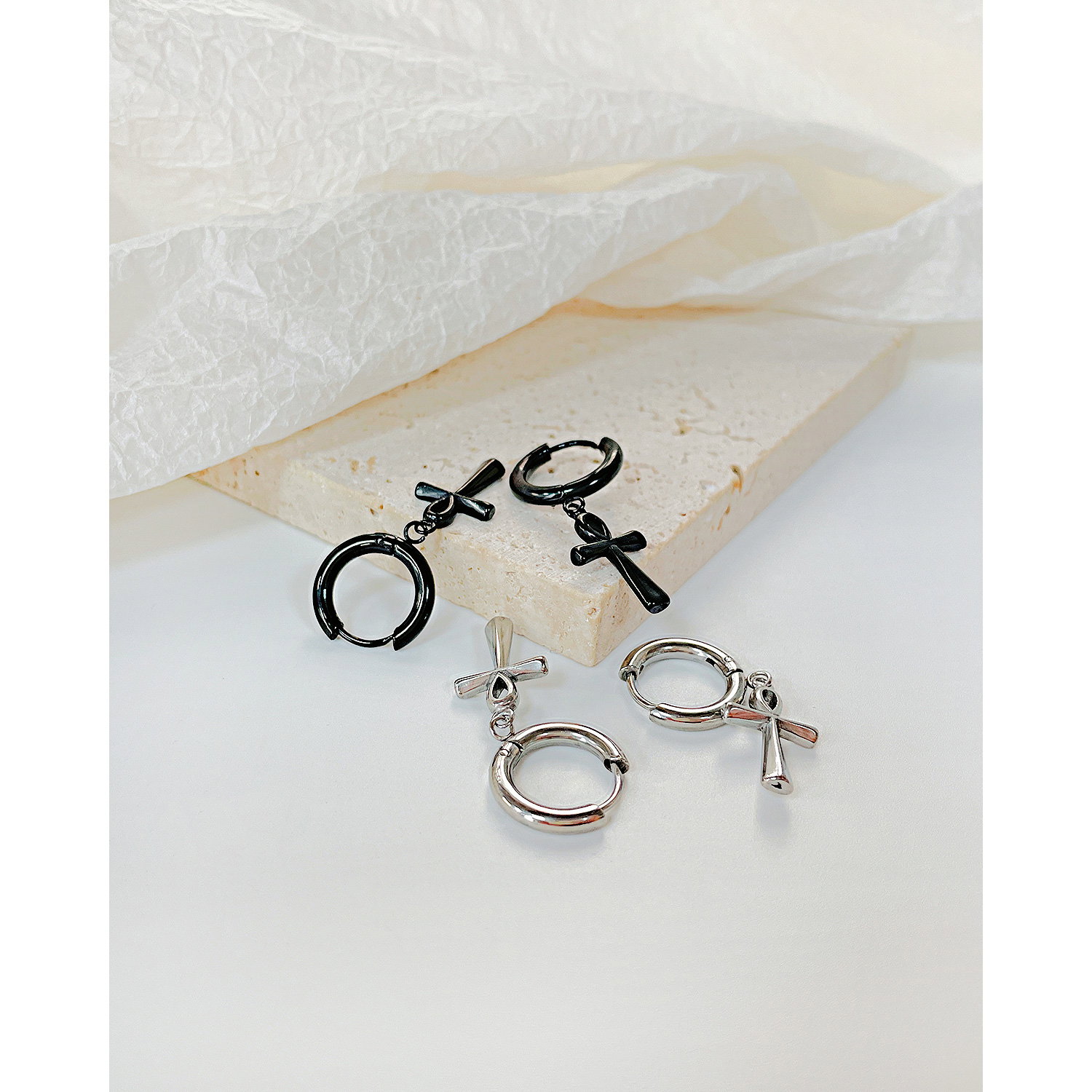 Un detaliu rafinat, cerceii cu cruciulite aduc un strop de mister si stil in orice tinuta. Forma lor delicata si finisajul lucios transforma fiecare aparitie intr-un moment special. Acesti cercei sunt alegerea perfecta pentru a exprima individualitate si credinta. Poarta-i cu incredere si simte cum stralucirea lor iti amplifica farmecul.