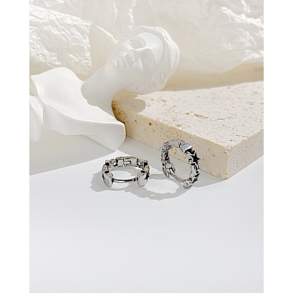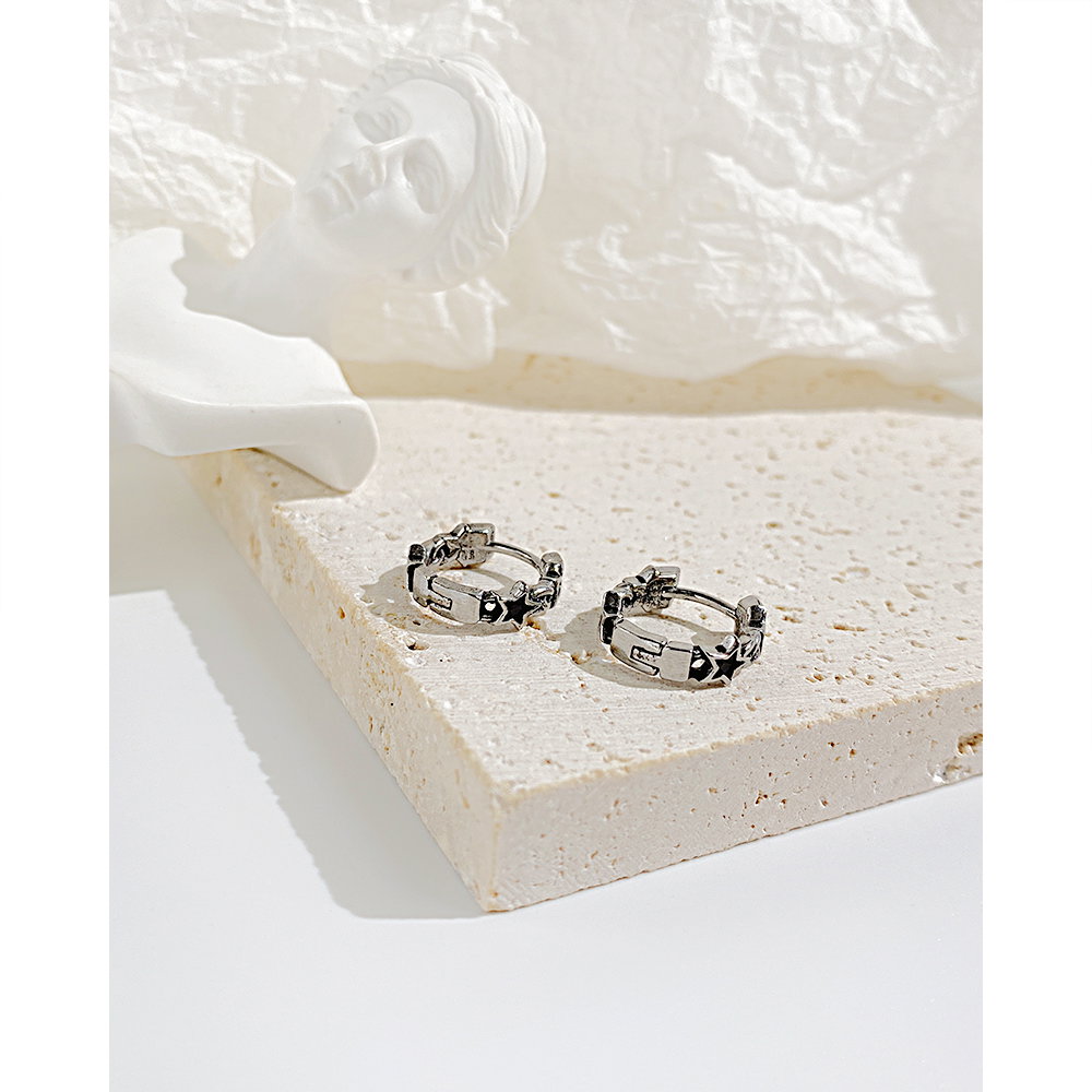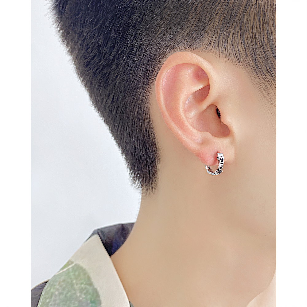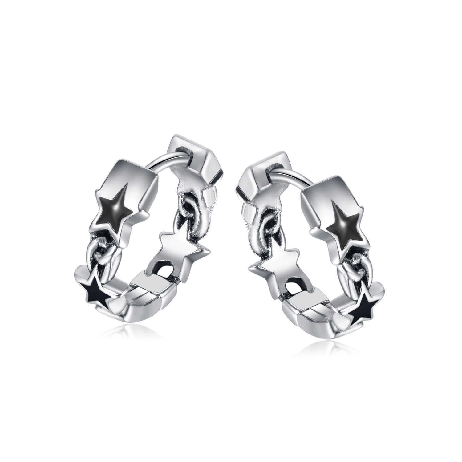 Cercei inox cu stelute. Dimensiuni: Diametru 13 mm, Grosime 4 mm. Culoare: Argintiu. Material: Inox. Ambalaj: Sacutel bijuterii (gratuit).
