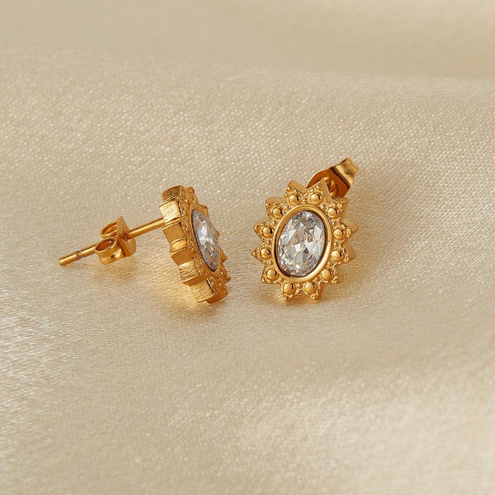 O explozie de lumina si stralucire, acesti cercei aduc un strop de eleganta in orice tinuta. Forma lor delicata, inspirata de natura, este accentuata de zirconii care reflecta razele soarelui. Indiferent de ocazie, purtarea acestor cercei va aduce o stare de incredere si bucurie, transformandu-te in centrul atentiei.