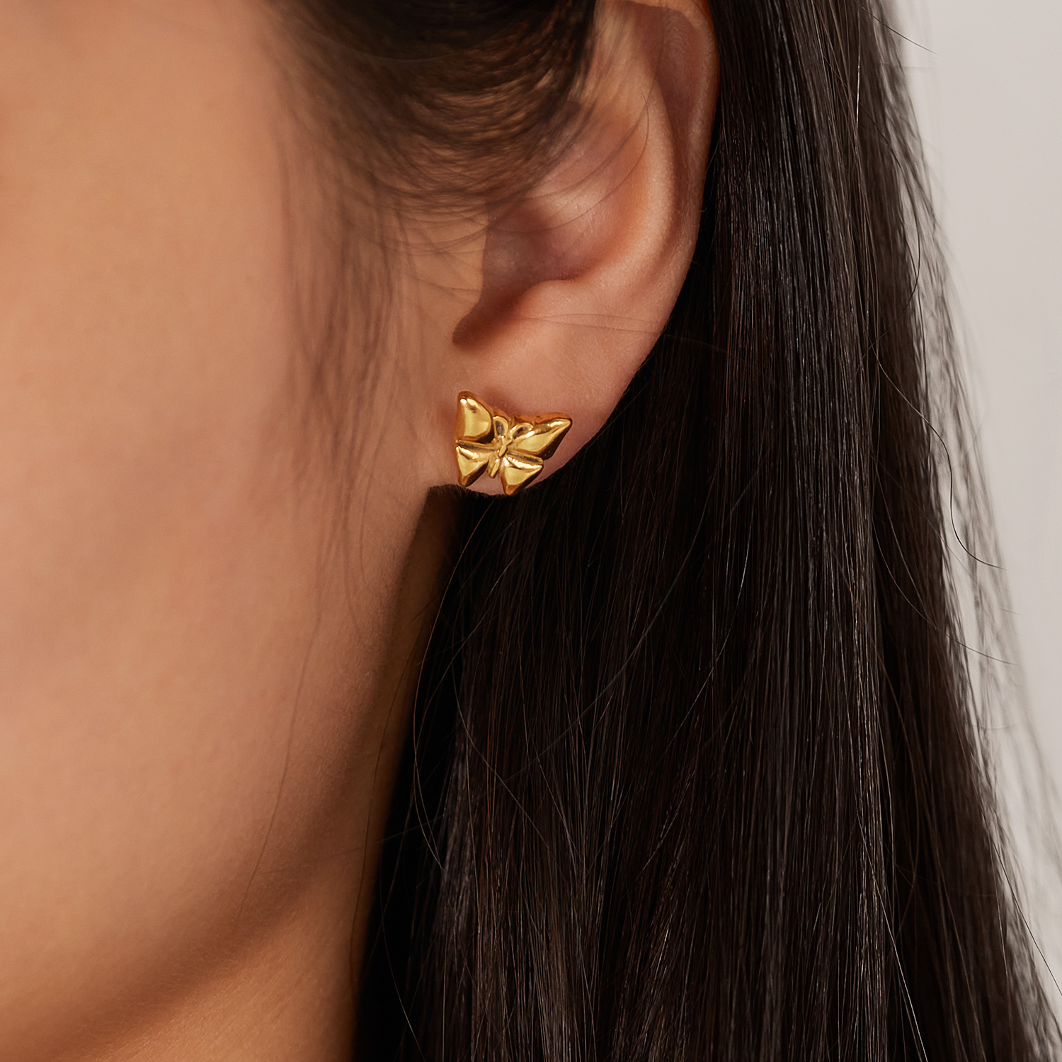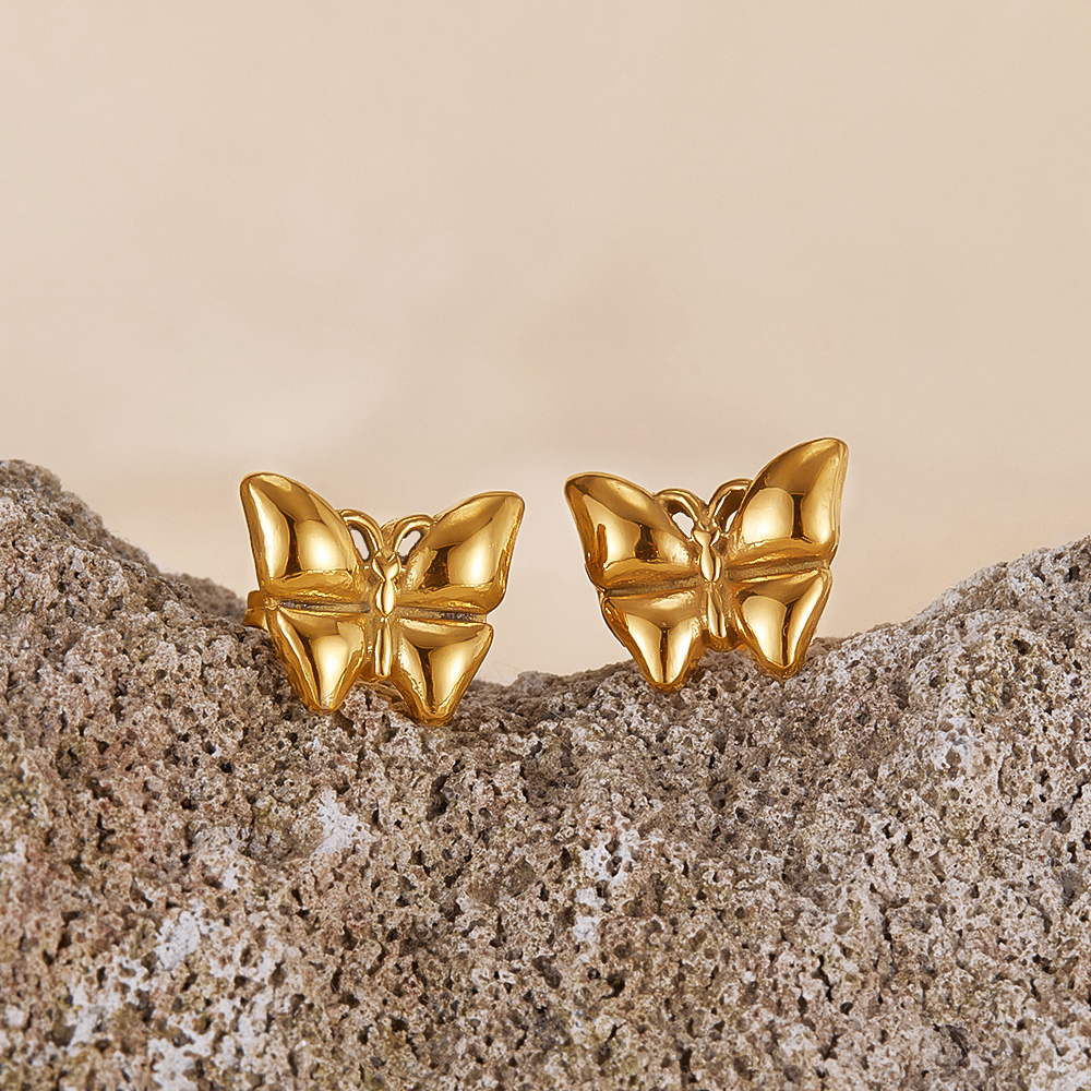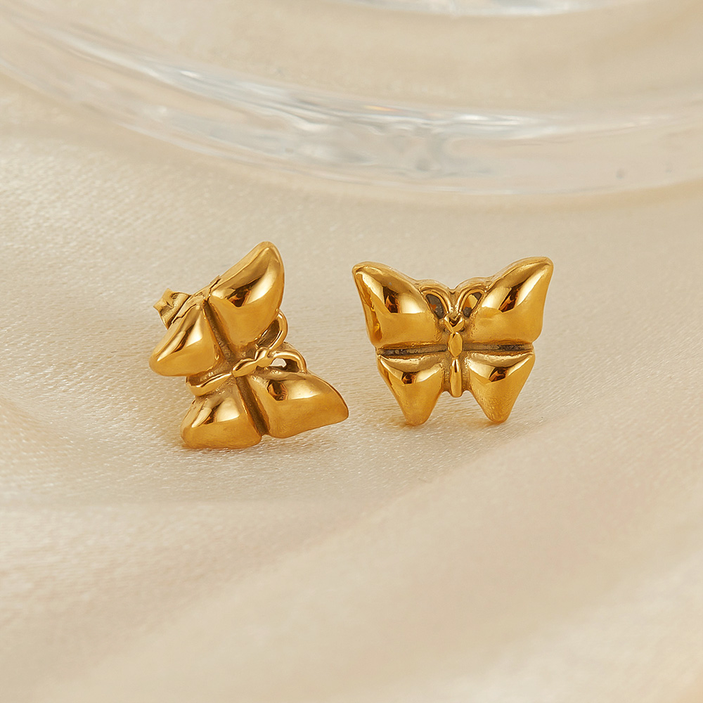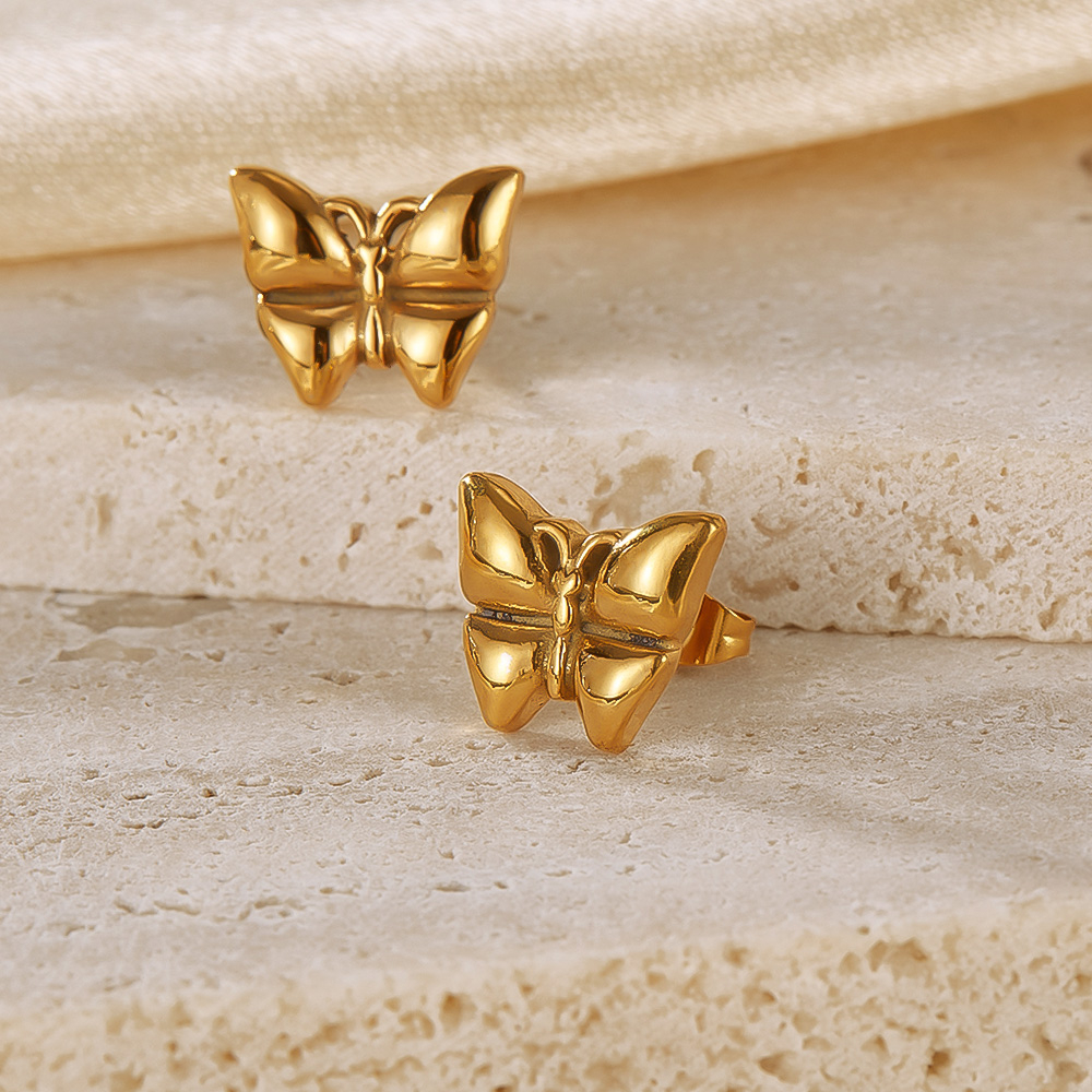 Cercei inox fluturasi. Dimensiuni: vezi poze pentru detalii. Material: Inox. Culoare: Auriu. Pietre: Fara pietre.