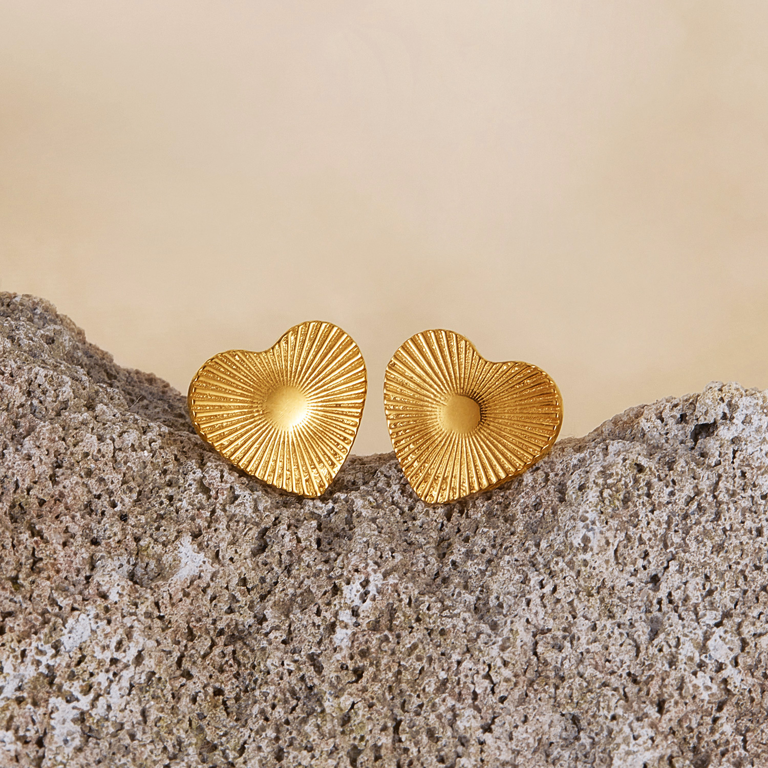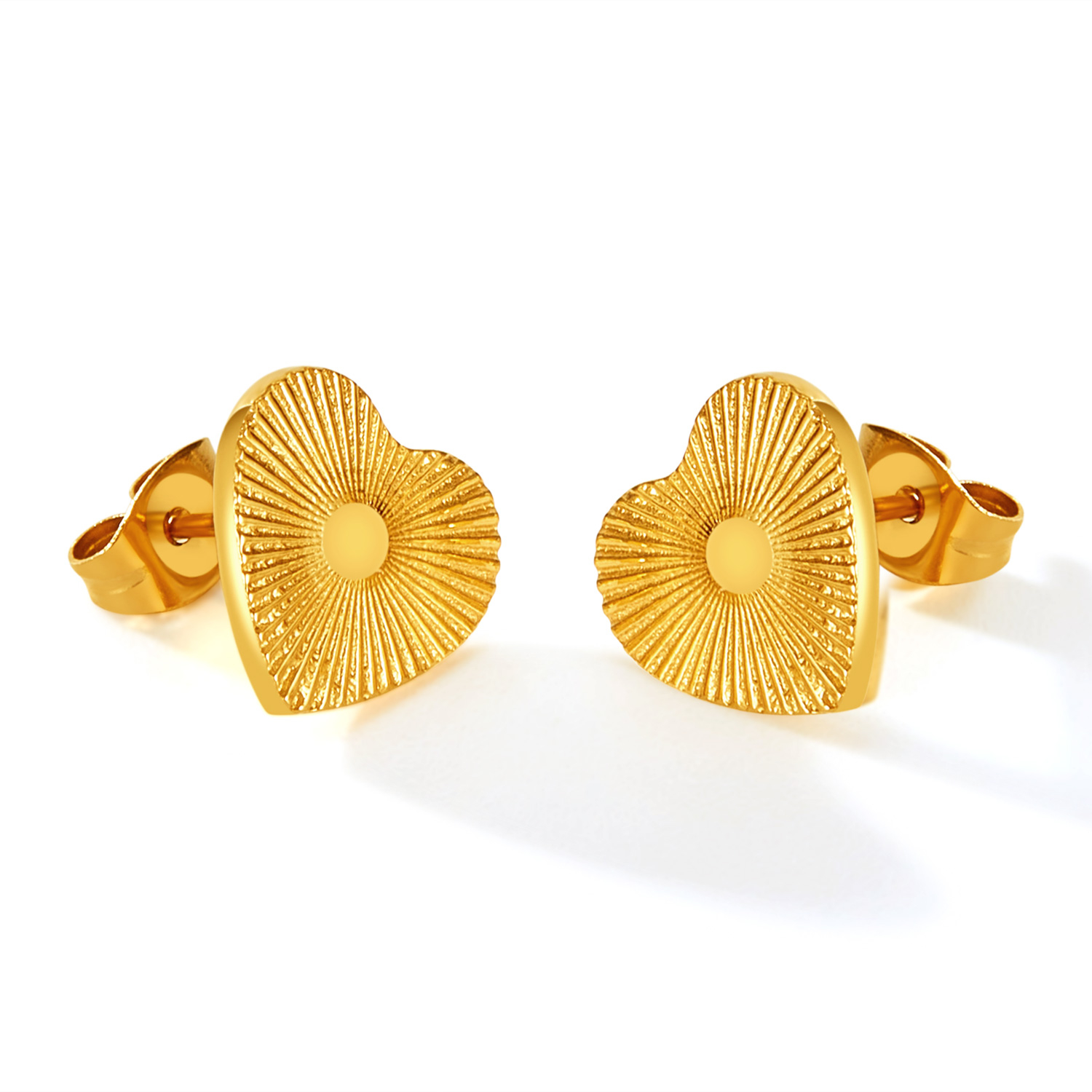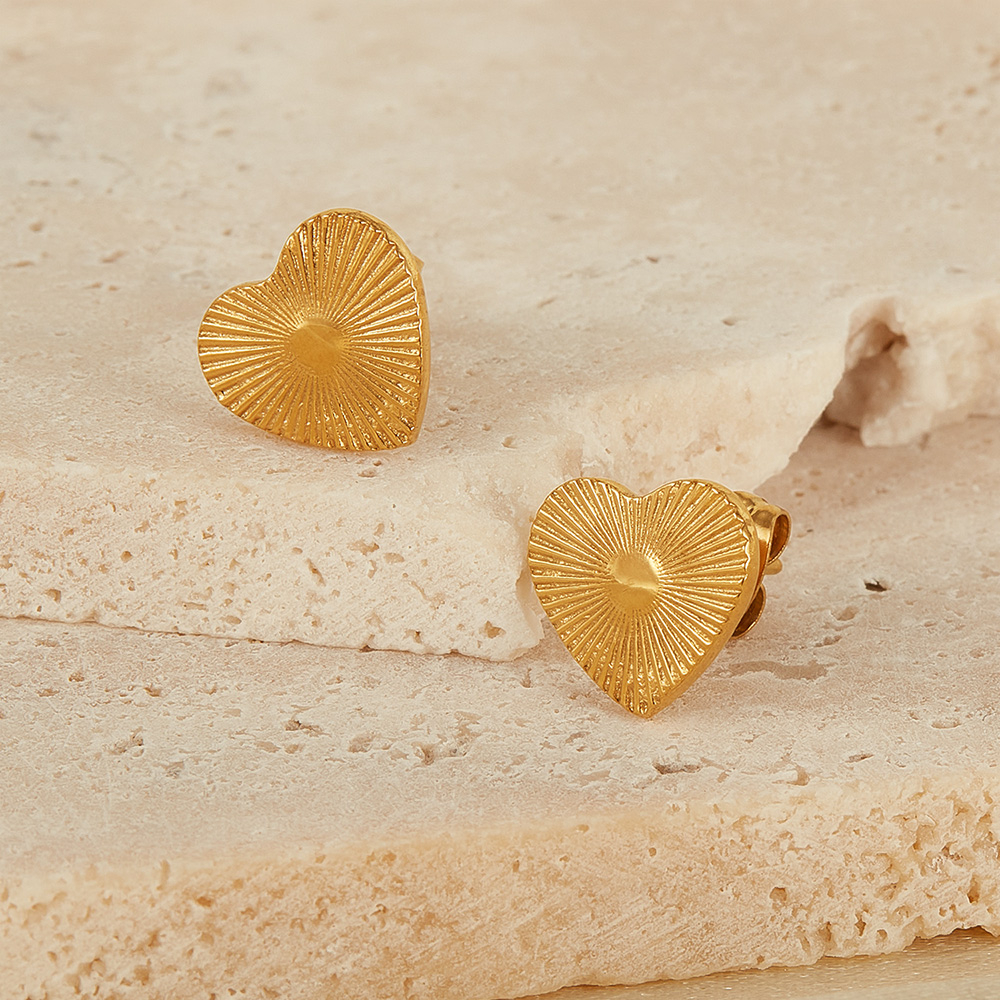 Cercei inox inimioare. Dimensiuni: vezi poze pentru detalii. Material: Inox. Culoare: Auriu. Pietre: Fara pietre.