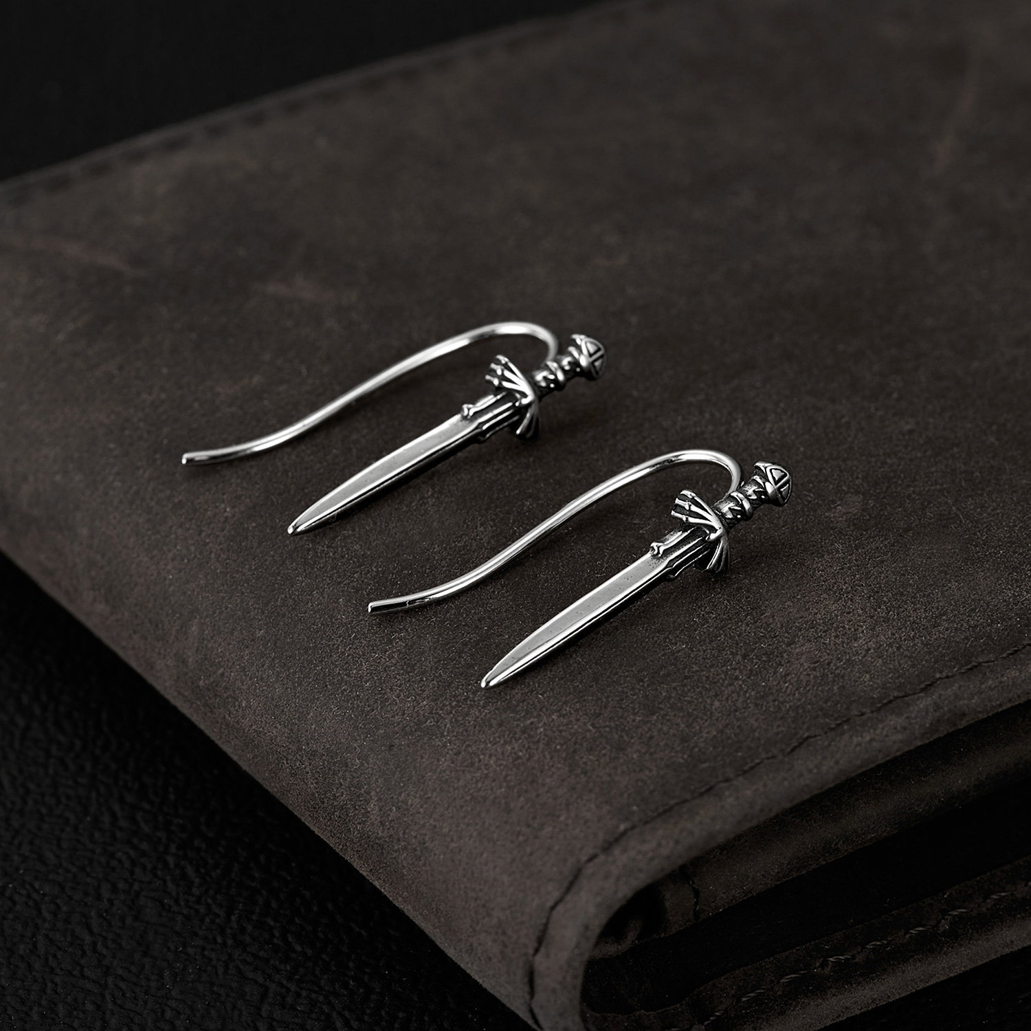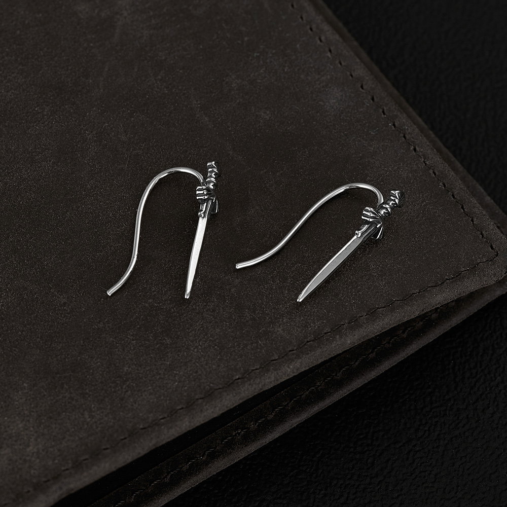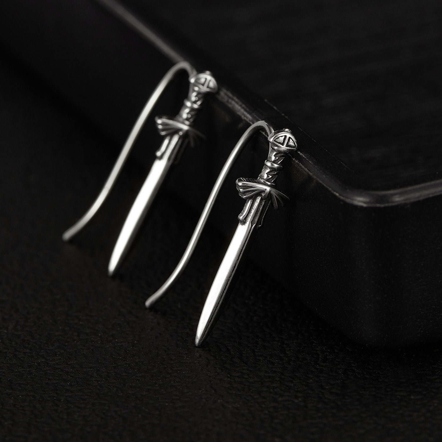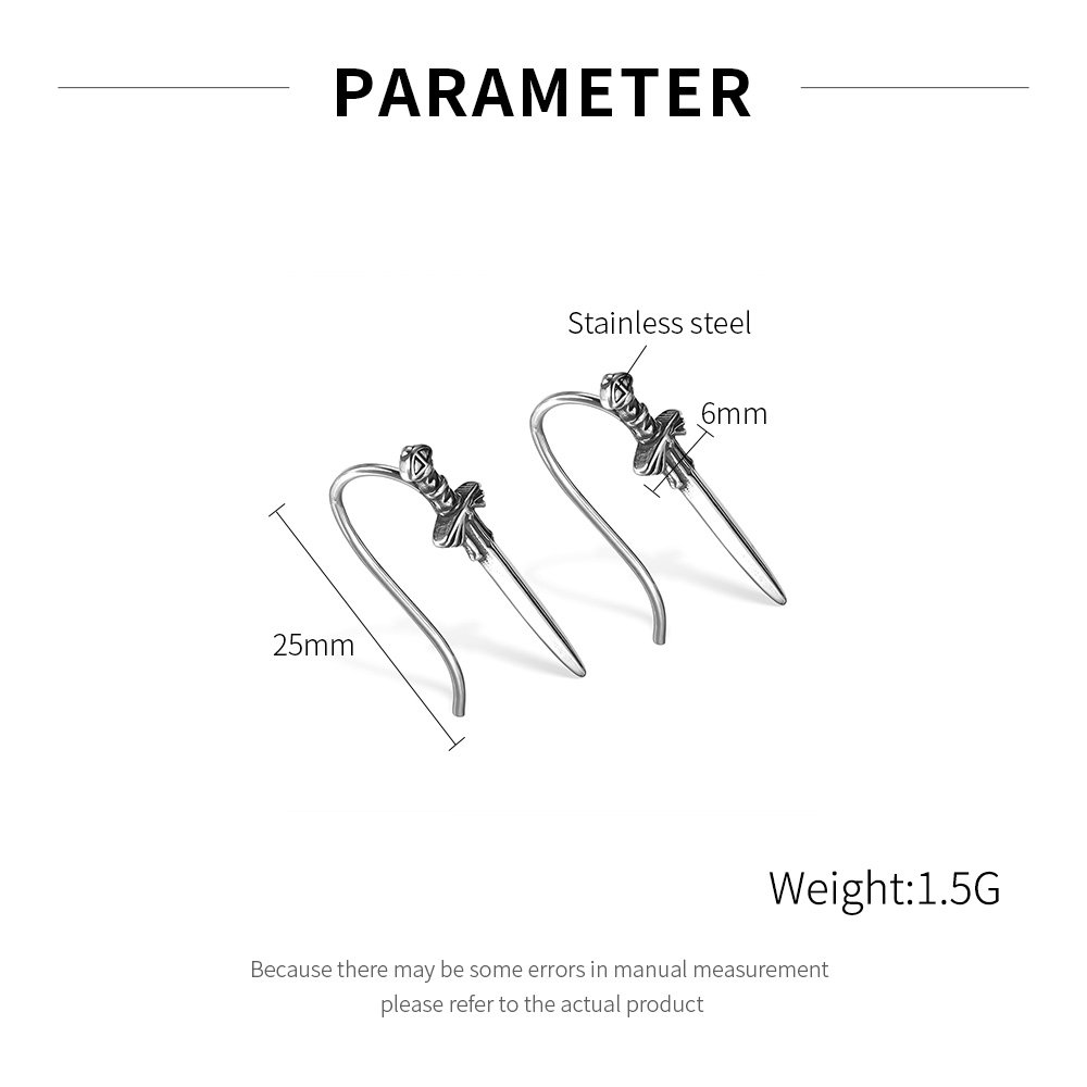 Cercei inox sabie. Dimensiuni: vezi poze pentru detalii. Material: Inox. Culoare: Argintiu. Pietre: Fara pietre.