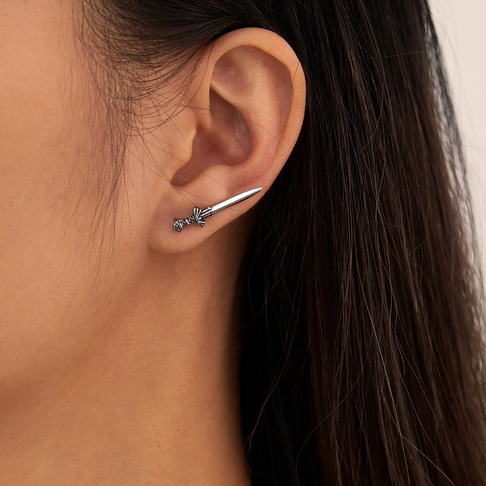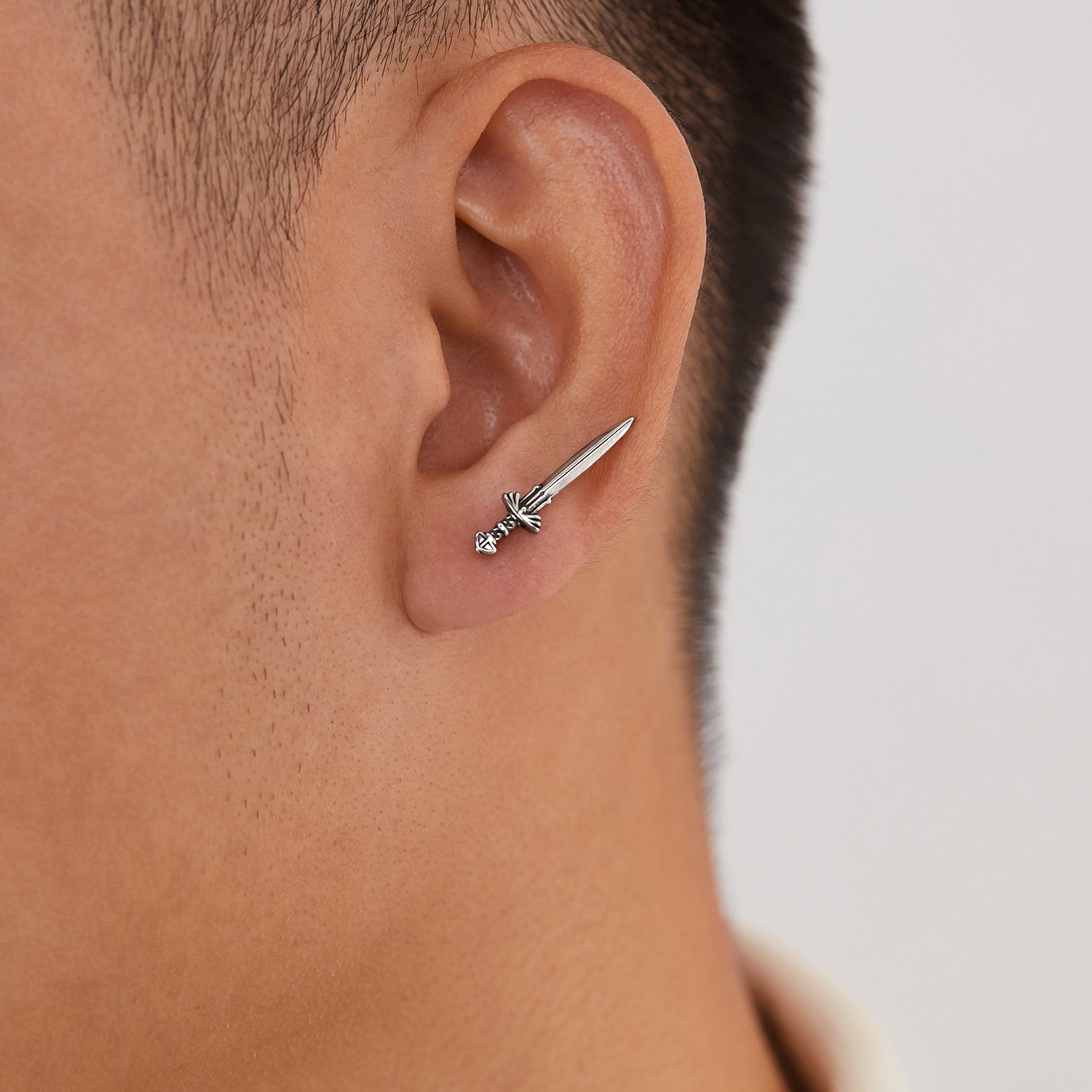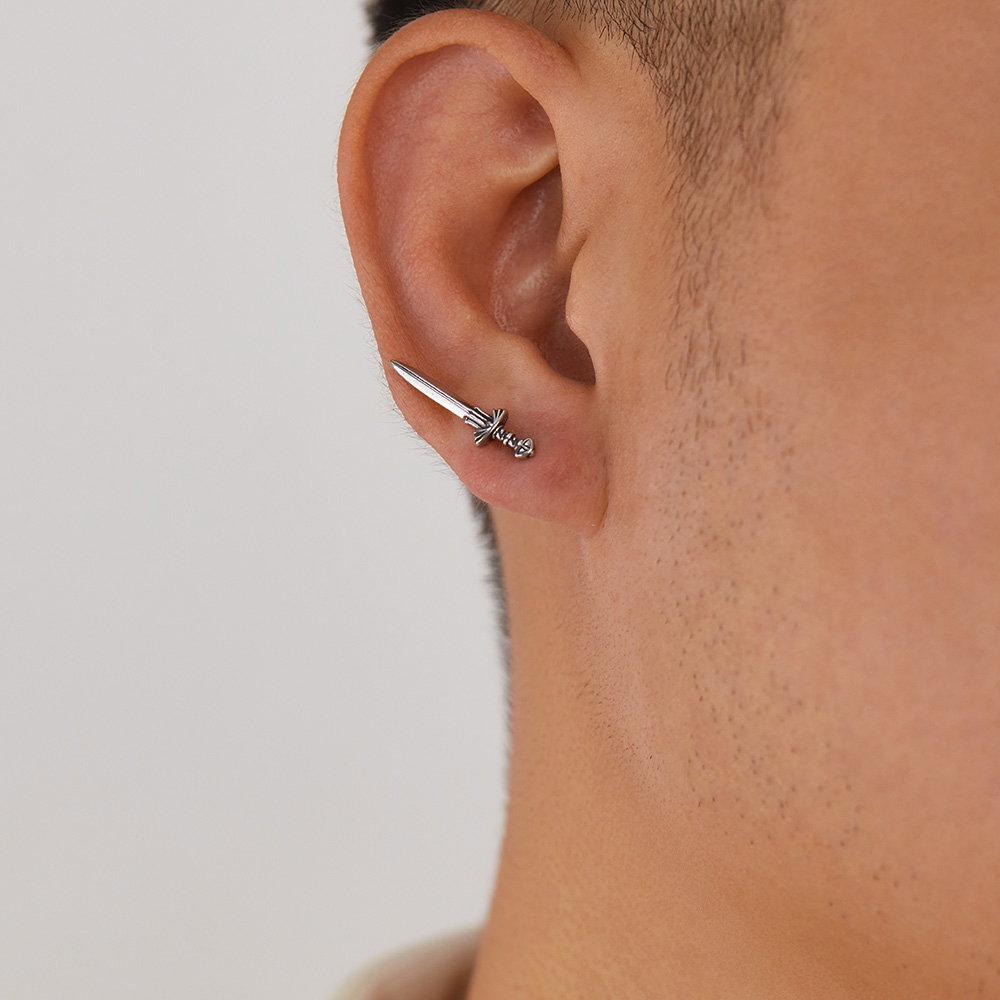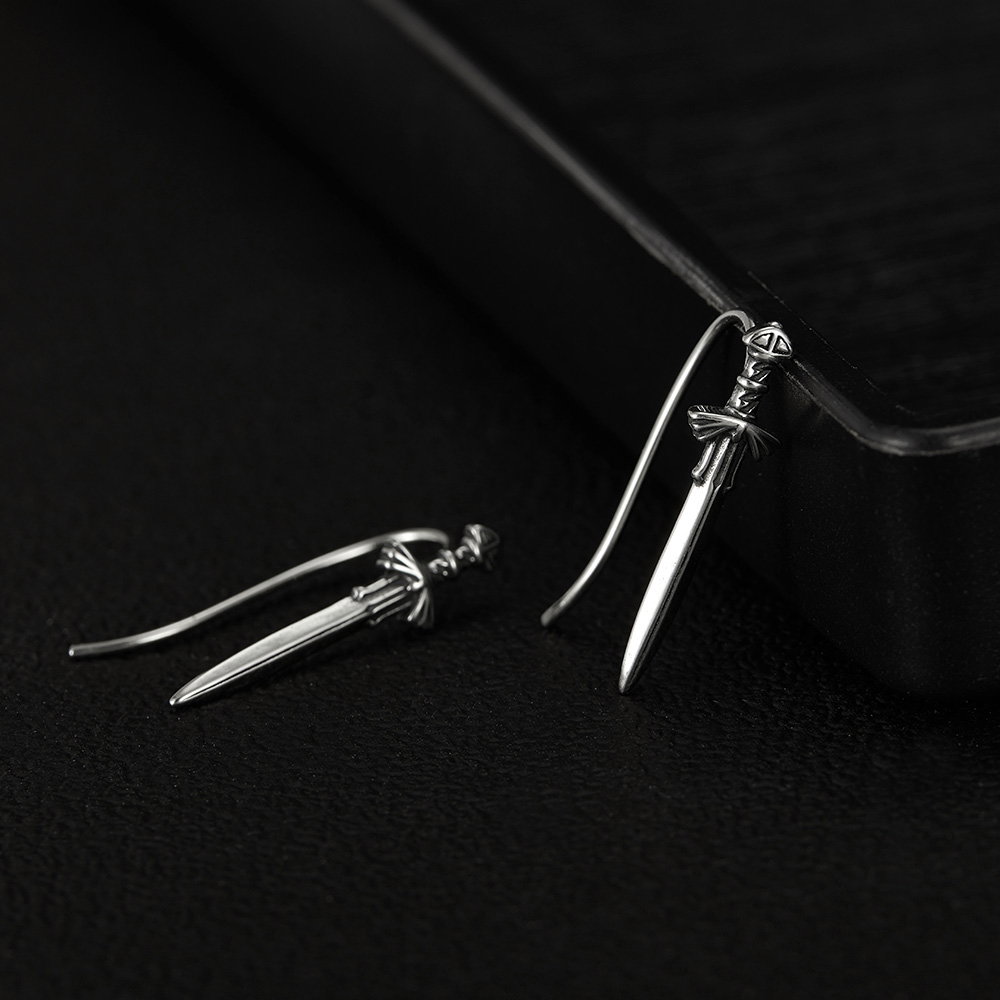 Cercei inox sabie. Dimensiuni: vezi poze pentru detalii. Material: Inox. Culoare: Argintiu. Pietre: Fara pietre.