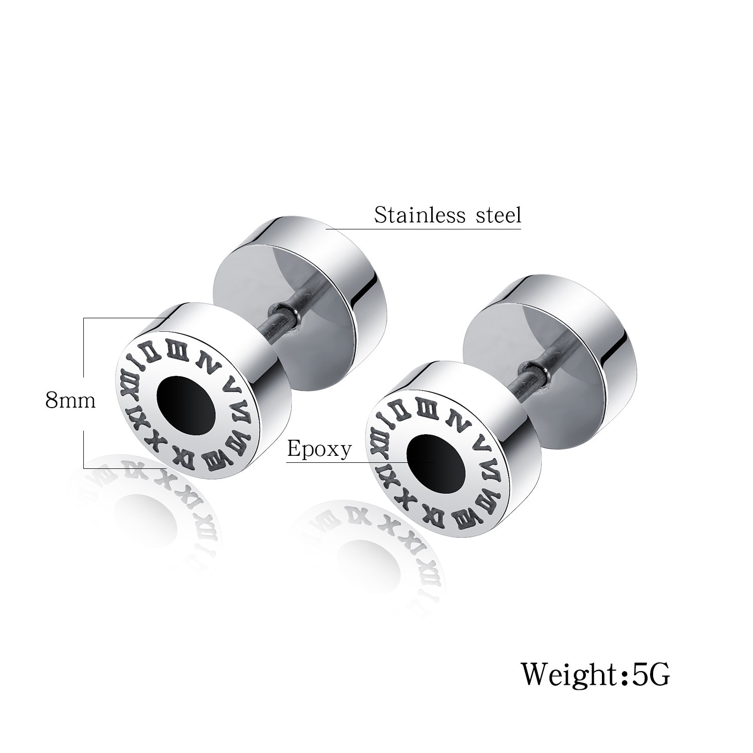 Cercei rotunzi din otel inoxidabil, cu cifre romana. Produs fabricat din inox de cea mai buna calitate, fapt ce-i confera o rezistenta crescuta la uzura si o perioada de utilizare indelungata. Diametru 0,8 cm.