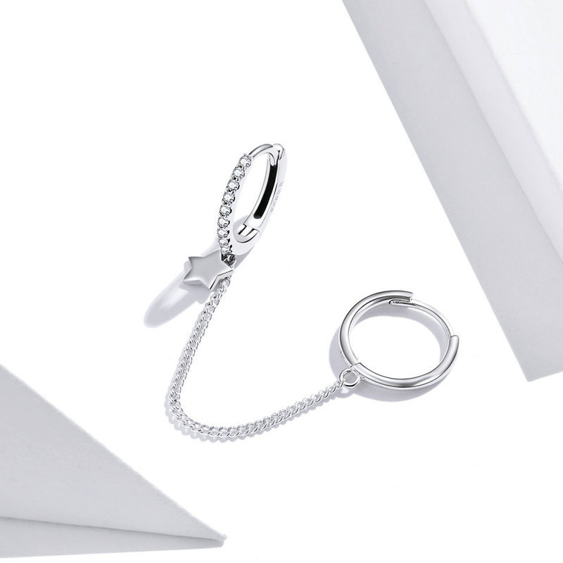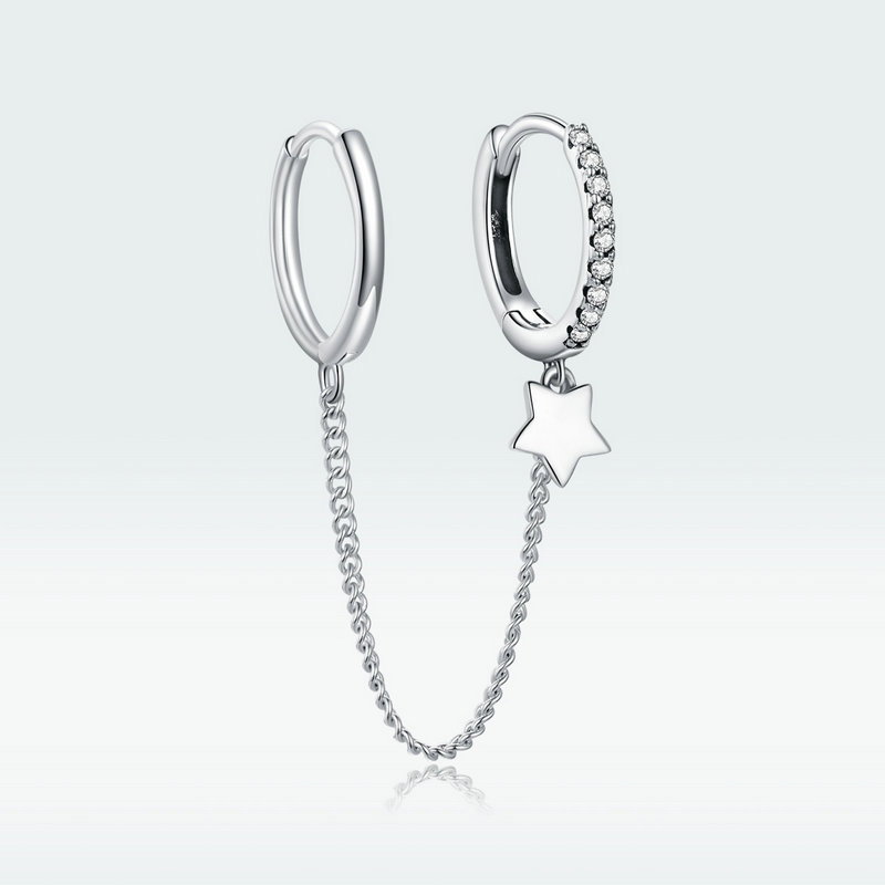 Intr-o seara de vara, acest cercel elegant cu forma delicata si un motiv de steluta stralucitoare adauga un strop de magie oricarei tinute. Zirconiile ce il insotesc capteaza lumina, creand un efect deosebit, in timp ce lantul subtire confera o nota de rafinament. Poarta-l pentru a te simti increzatoare si speciala, fiind alegerea perfecta pentru a aduce un zambet pe chipul celor dragi.