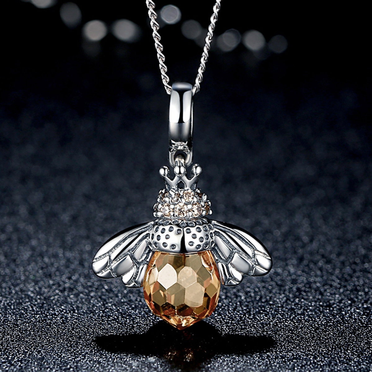 Iti plac accesoriile cu modele inspirate din natura? Atunci cu siguranta vei adora sa porti acest talisman deosebit si dragut cu albinute. Ocaziile speciale din viata ta vor deveni unice daca porti o bijuterie din argint din colectia noastra, inspirata din natura. Rochiile elegante vor fi puse in valoare foarte frumos daca vei alege drept accesoriu o astfel de bijuterie.
