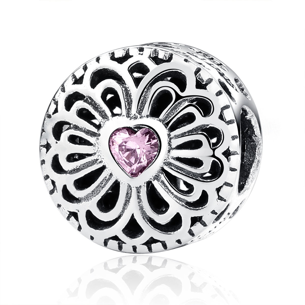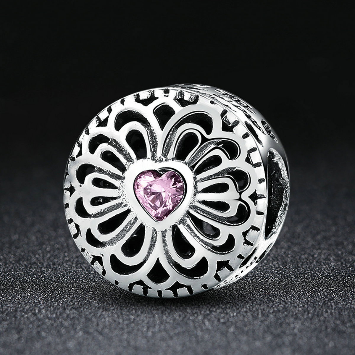 Iti plac accesoriile cu modele inspirate din natura? Atunci cu siguranta vei adora sa porti acest talisman deosebit si dragut cu floare si inimioara roz, inscriptionat cu "Friendship starts with loving hearts". Florile sunt insemne universale ale frumosului, elegantei si delicatetii, exact cum sunt bijuteriile, cum esti tu. Ocaziile speciale din viata ta vor deveni unice daca porti o bijuterie din argint din colectia noastra, inspirata din natura. Rochiile elegante vor fi puse in valoare foarte frumos daca vei alege drept accesoriu o astfel de bijuterie.