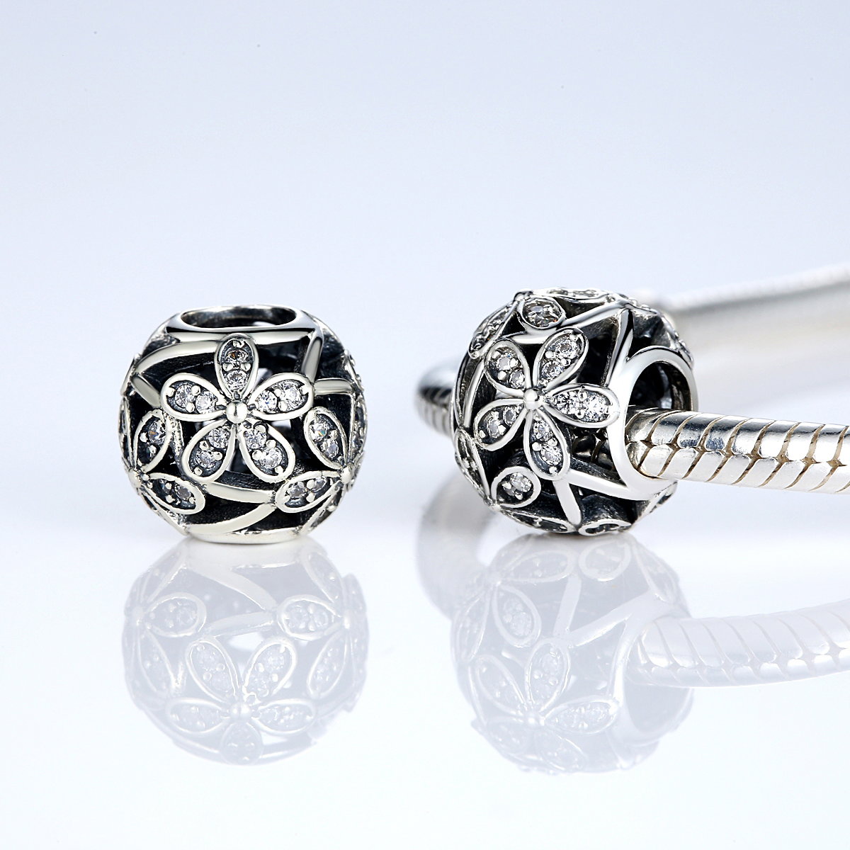 Charm argint 925 cu floricele si zirconii albe - Be Nature PST0014