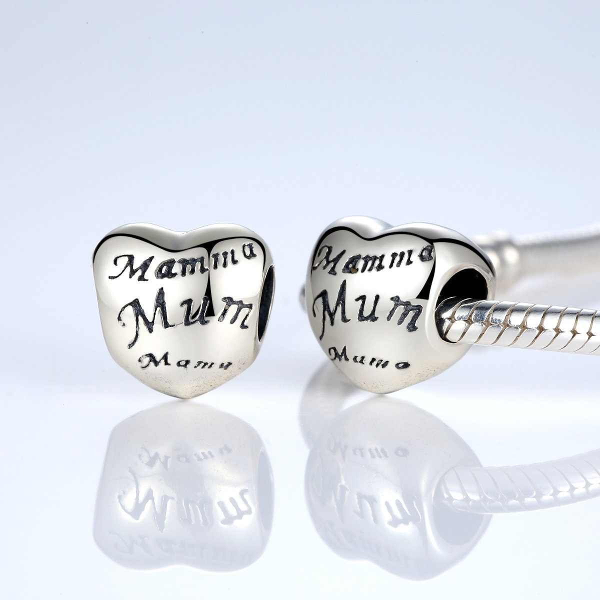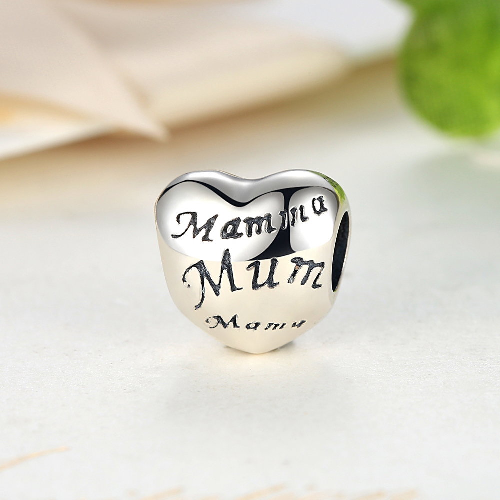 Nimic nu poate sa exprime dragostea decat un talisman din argint in forma de inimioara. Inima este inscriptionata cu Mama, Mum, Mamma. Cu siguranta il vei adora inca din momentul in care il vei purta pentru prima oara, pentru ca este simbolul iubirii.