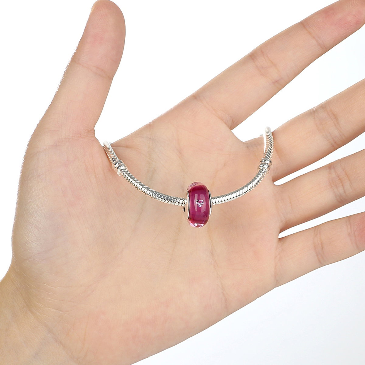 Elegant, interesant, dar si cu foarte multa personalitate, acest talisman din argint cu sticla roz decorata cu inimioare te va face sa stralucesti o seara intreaga si sa iesi in lumina prin originalitatea si bunul gust de care ai dat dovada. Adauga in colectia ta de accesorii aceast talisman din argint si bucura-te sa fii tu de fiecare data.