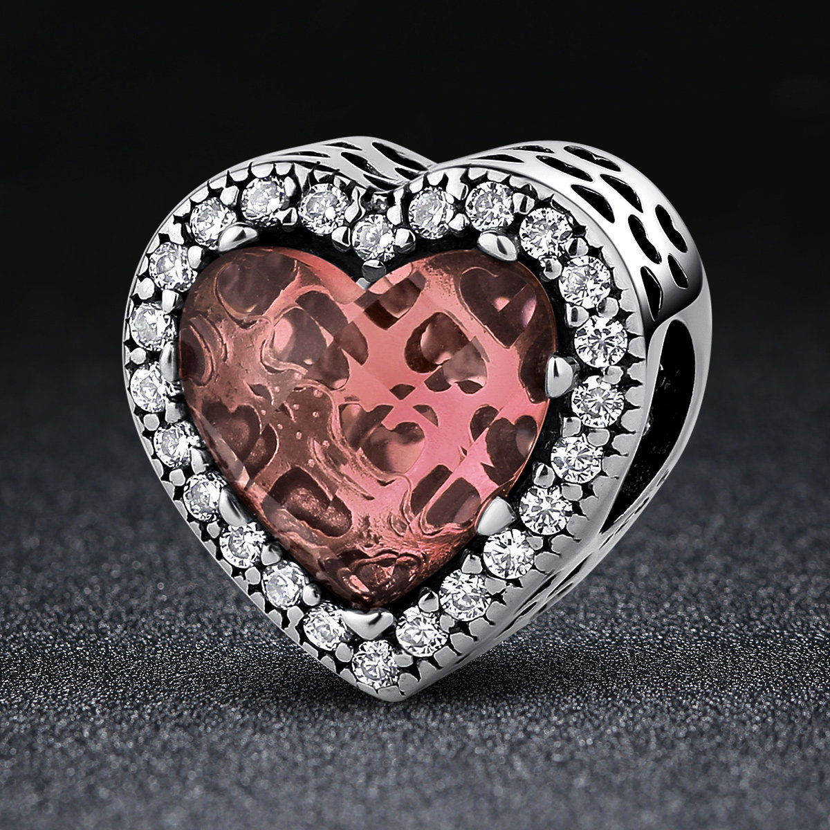 Charm argint 925 inimioara cu cristal maro si zirconii albe - Be in Love PST0045