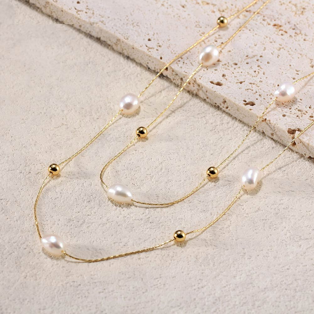 Acest colier rafinat, realizat din argint 925 placat cu aur de 14K, imbina eleganta cu naturaletea perlelor de cultura. Fiecare detaliu este o poveste in sine, iar stralucirea sa delicata adauga un strop de magie oricarei tinute. Perlele, cu formele lor unice, danseaza pe firul de aur, reflectand lumina intr-un mod subtil si captivant. O alegere perfecta pentru a evoca un sentiment de sofisticare si feminitate, acest colier devine rapid un accesoriu de neuitat, ce se remarca prin eleganta sa atemporala.