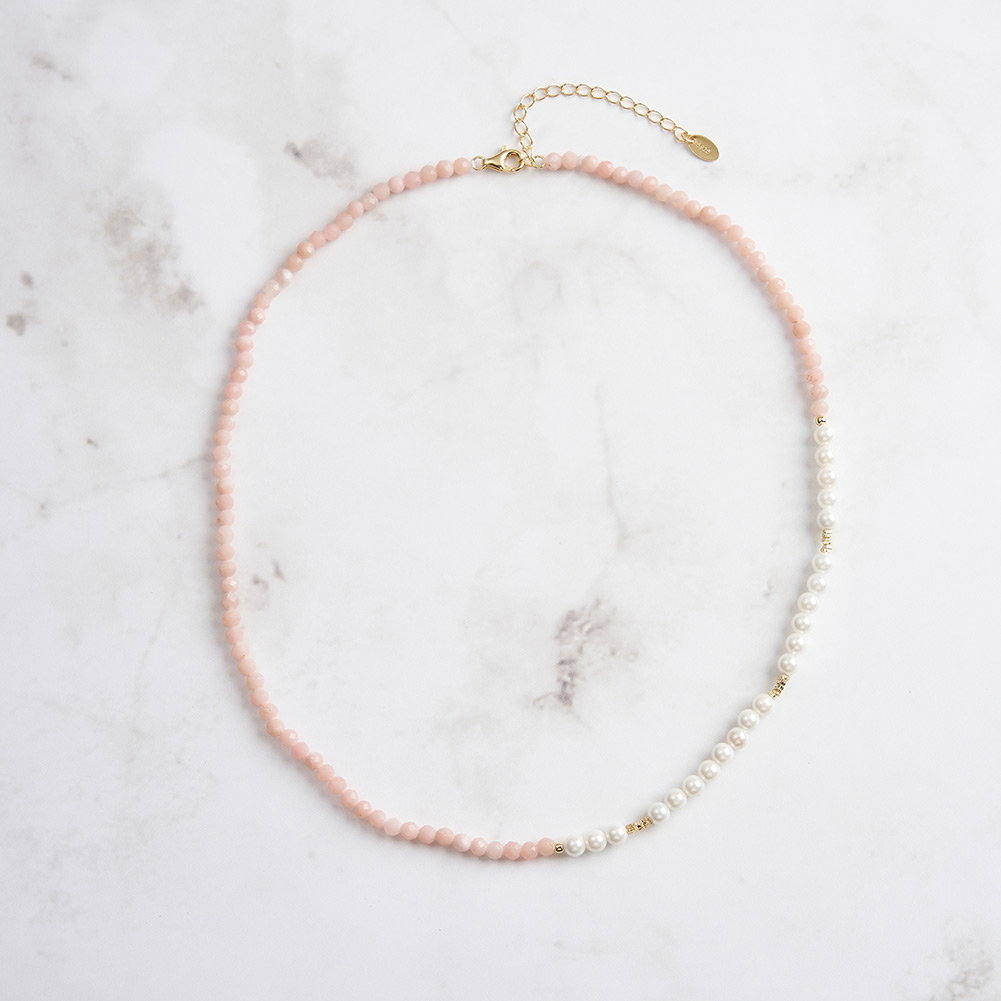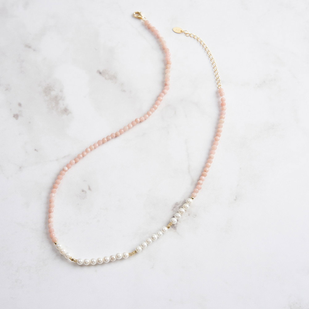 Descoperiti eleganta pura a acestui colier din argint 925, delicat placat cu aur de 14K. Fiecare detaliu este o poveste, cu perle prelucrate din cochilii de scoici si opal natural, ce aduc un strop de lumina si rafinament in orice tinuta. Designul sau subtil si sofisticat se remarca prin stralucirea de durata, transformandu-l intr-o alegere perfecta pentru momentele speciale. Acest colier nu este doar un accesoriu, ci o declaratie de stil, ce va insoti cu gratie fiecare pas al purtatoarei.