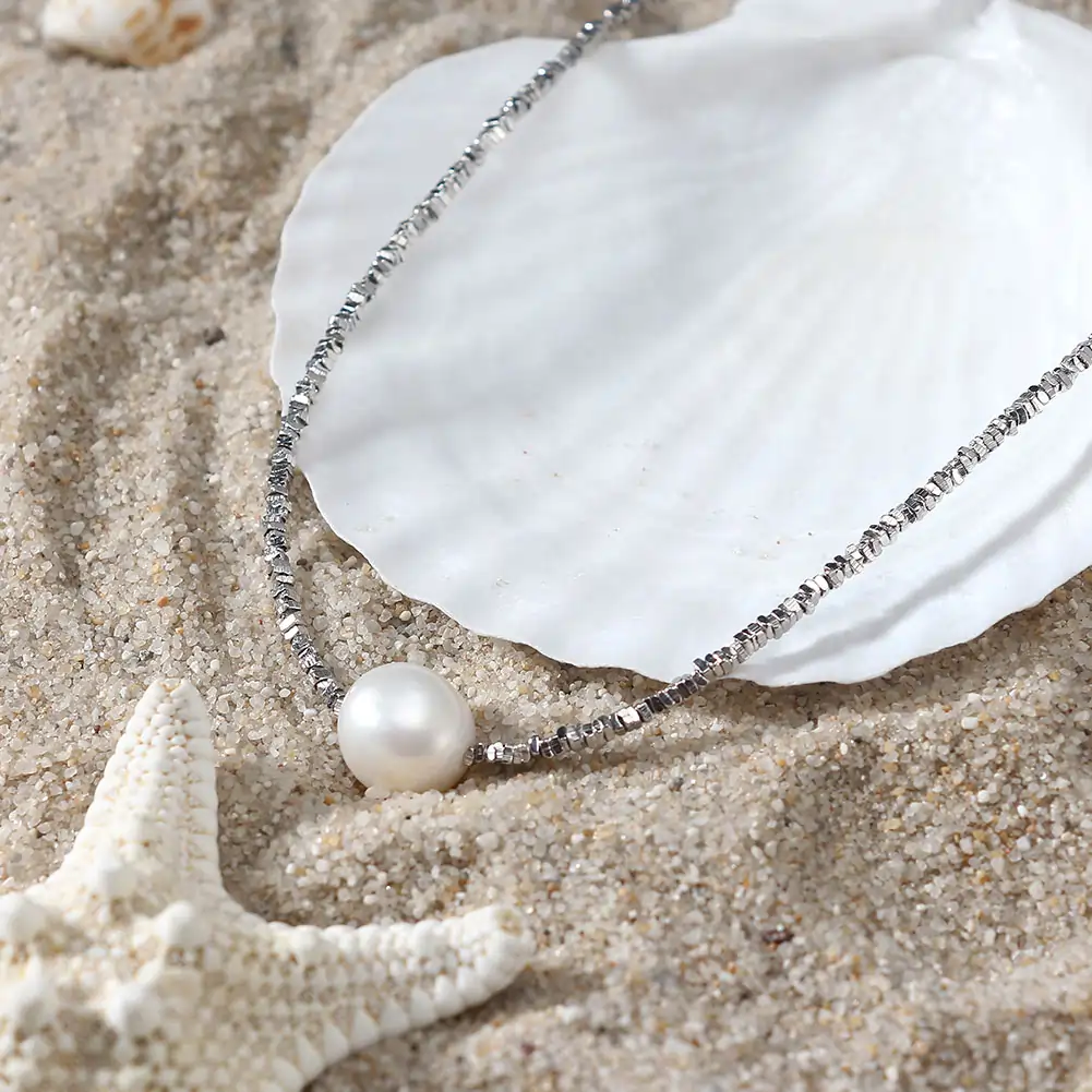 Un colier delicat, realizat din argint 925 placat cu rodiu, ce imbina stralucirea metalului cu eleganta perlelor naturale de cultura. Fiecare detaliu al acestui accesoriu povesteste despre rafinament si bun gust, oferind o nota de sofisticare oricarei tinute. Stralucirea durabila a argintului si lumina subtila a perlelor creeaza o armonie perfecta, transformandu-l intr-o alegere inspirata pentru momente speciale. Acest colier este mai mult decat un simplu accesoriu; este o declaratie de stil si o invitatie la eleganta accesibila.