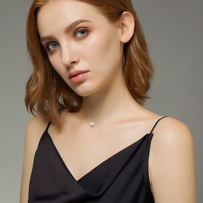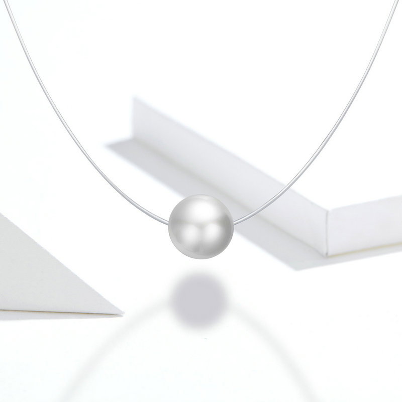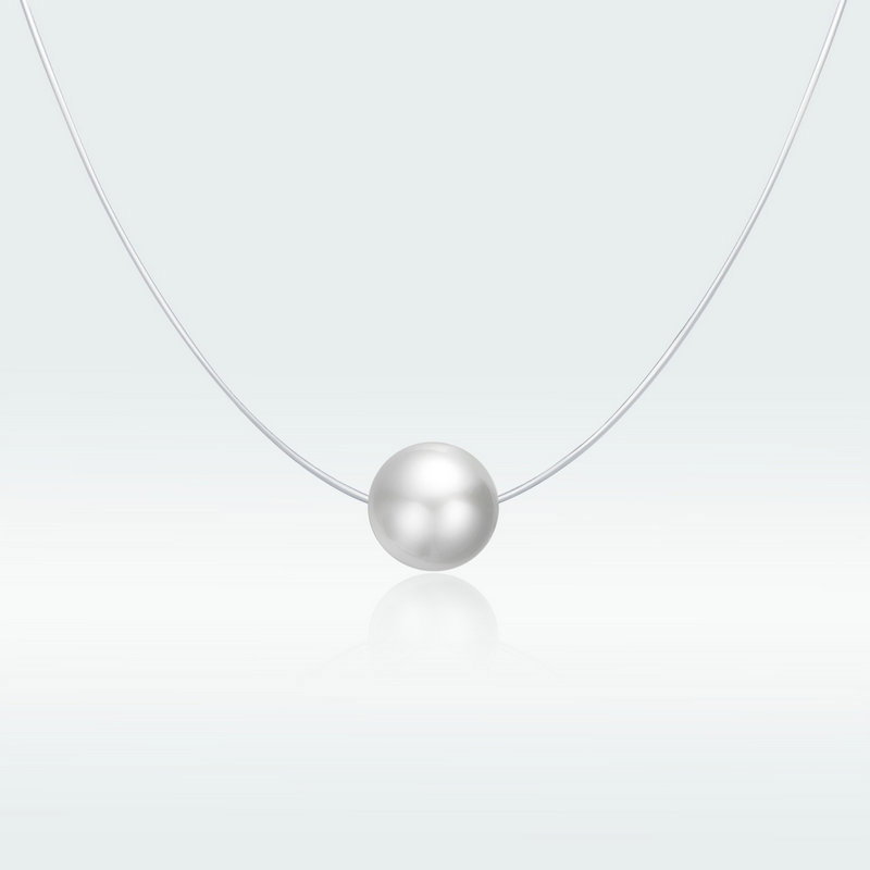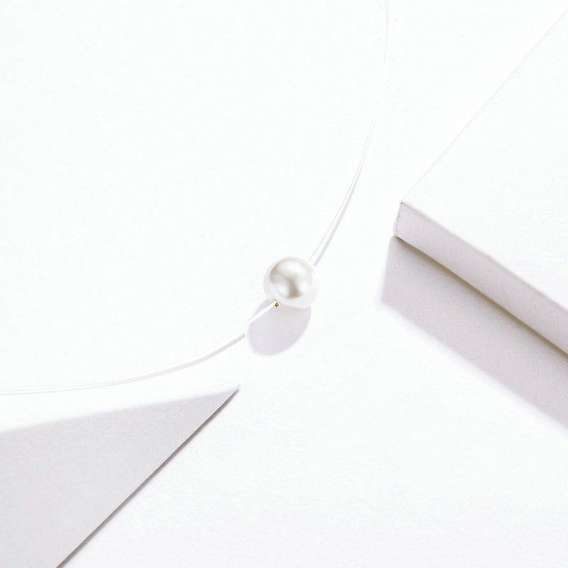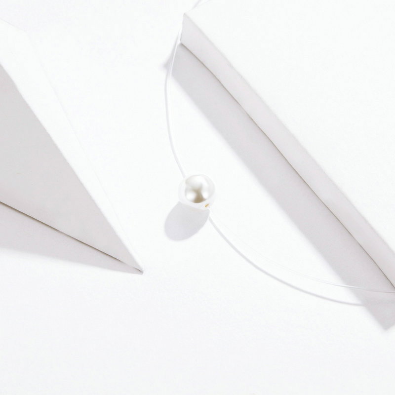 Colier argint cu perla si snur transparent (guta). Dimensiuni: Lungime 40 cm, Greutate 0,9 grame. Material: Argint 925 placat cu rodiu.