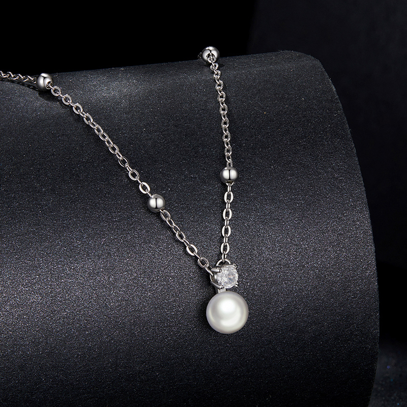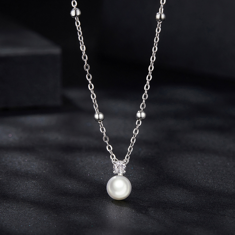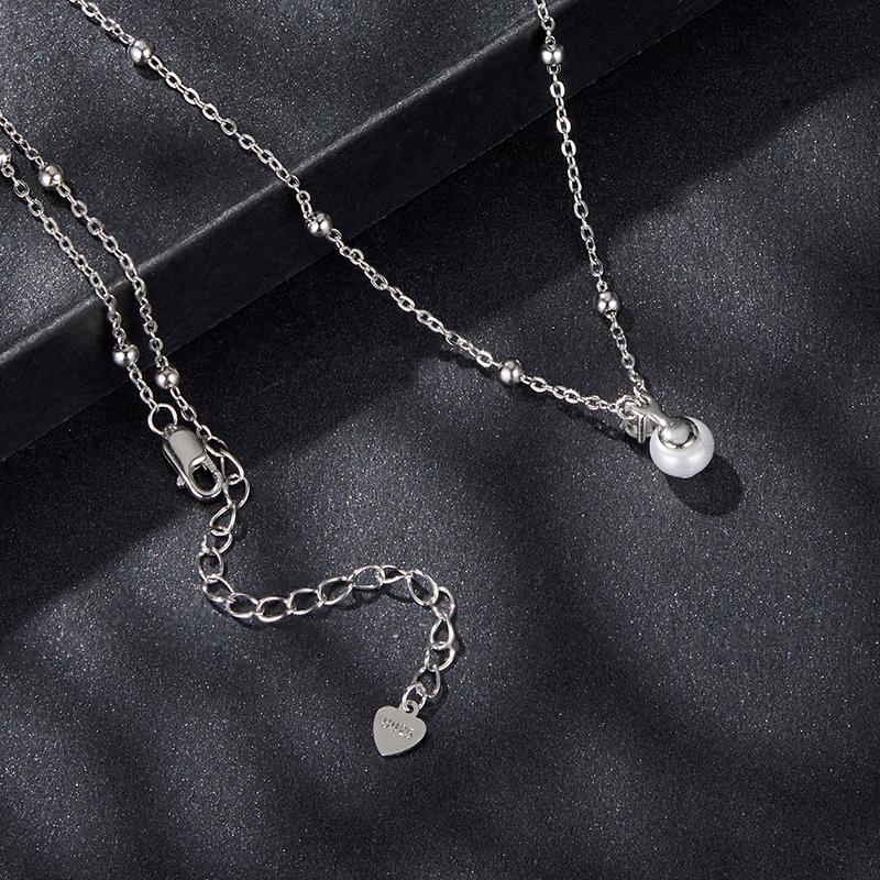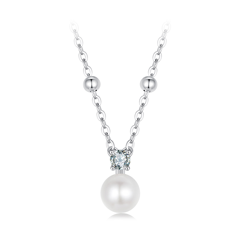 Dimensiuni: Lungime: 40 + 5 cm, Pandantiv: 0,9 x 0,6 cm, Moissanite: 0,3 cm/0,1ct, Perla: 0,6 cm, Greutate: 2,6 grame