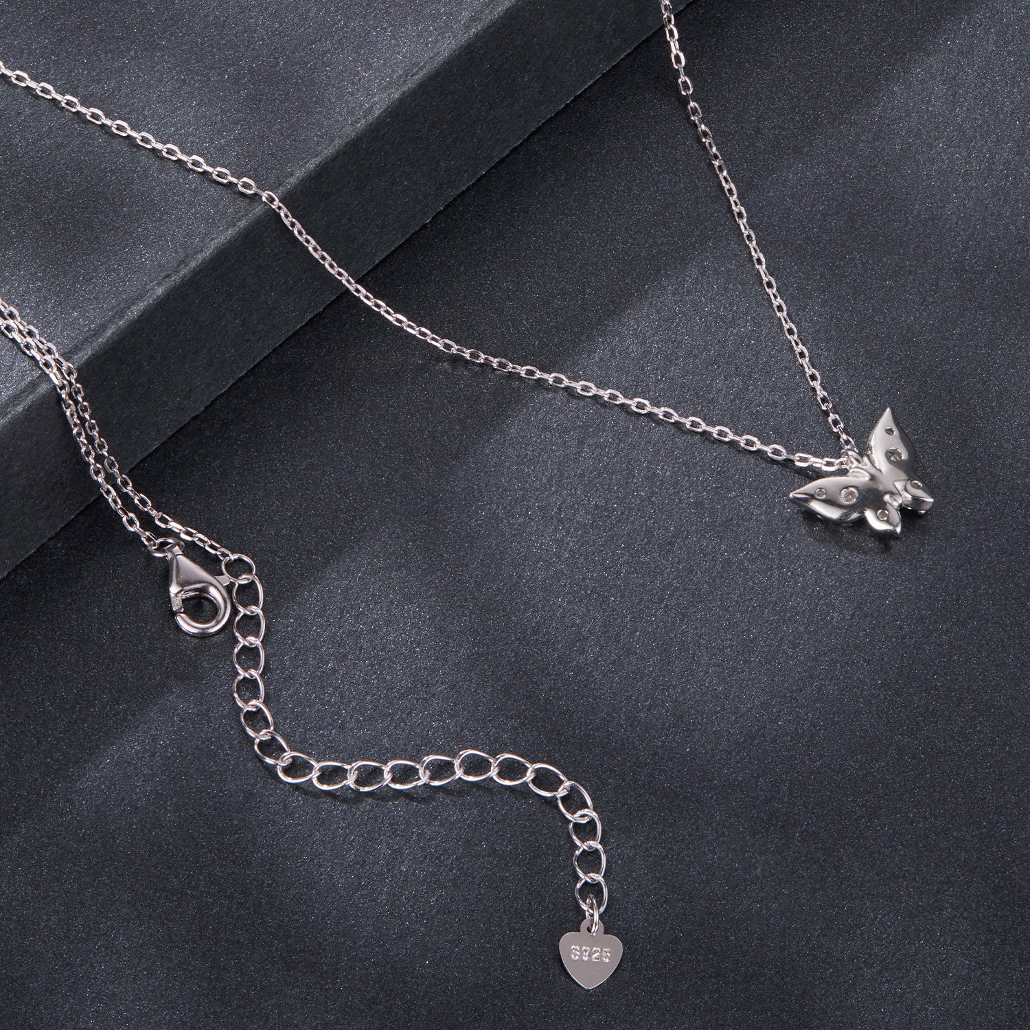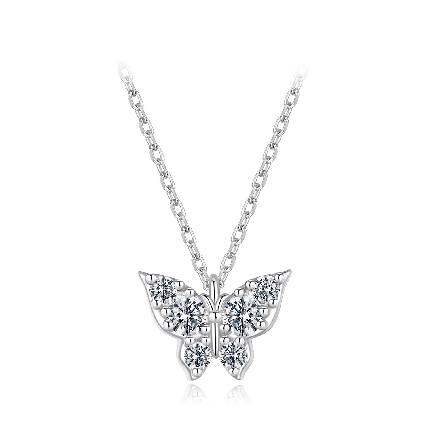 Dimensiuni: Lungime: 40 + 5 cm, Grosime lant: 0,8 mm, Pandantiv: 0,8 x 1,2 cm, Moissanit: 2 mm/0,03 ct, Greutate: 2,2 grame
