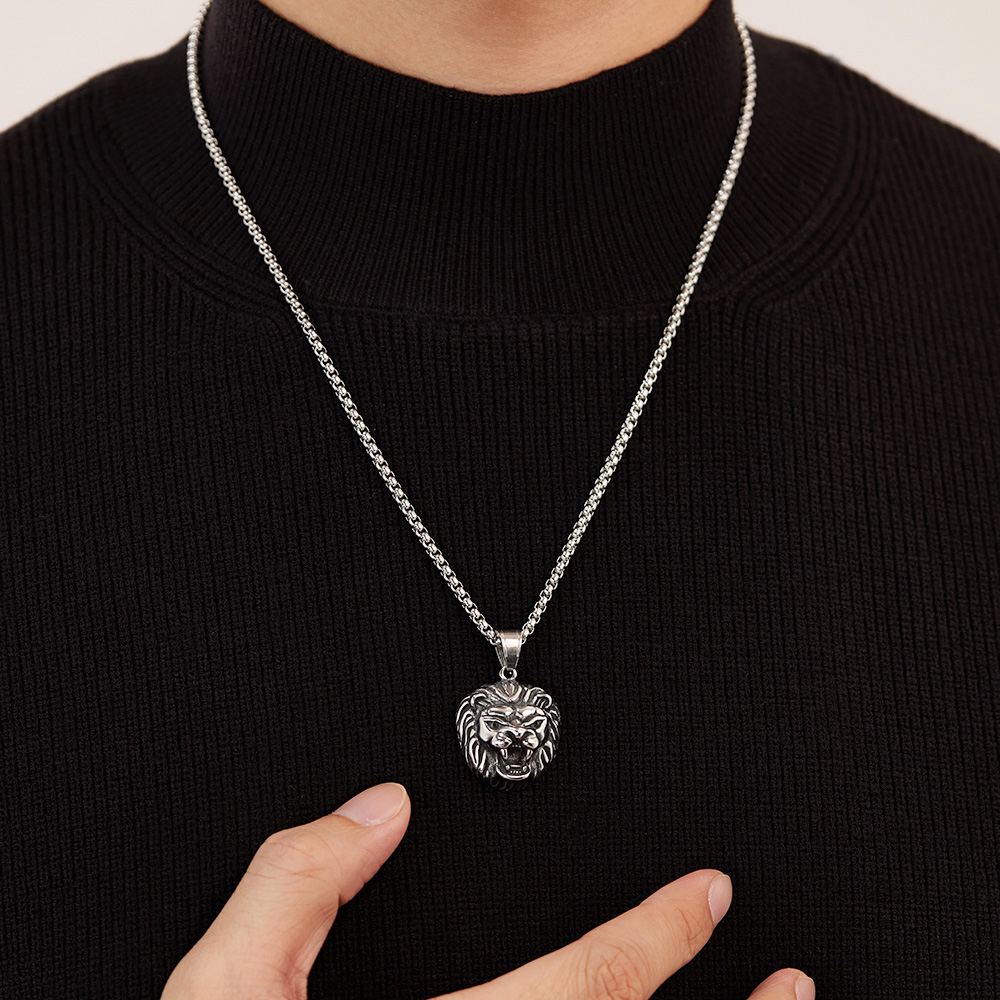 Acest colier inox cu pandantiv în formă de cap de leu emană forță, curaj și autoritate. Designul tridimensional redă cu precizie expresia impunătoare a regelui junglei, simbol al încrederii și protecției. Realizat din oțel inoxidabil de înaltă calitate, colierul oferă durabilitate și un aspect elegant, fiind ideal pentru cei care doresc să-și exprime personalitatea puternică. O bijuterie statement, perfectă pentru bărbații care nu se tem să iasă în evidență și să poarte cu mândrie simbolul regalității și al leadershipului.