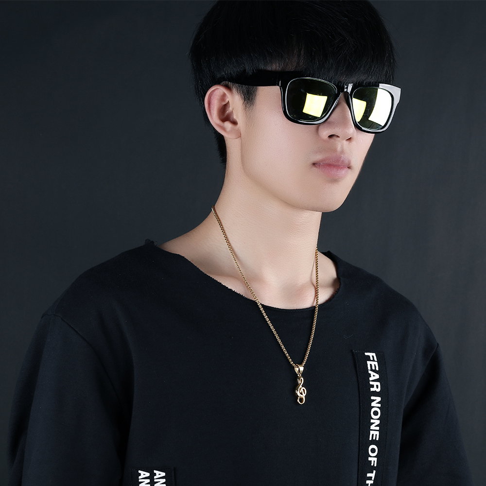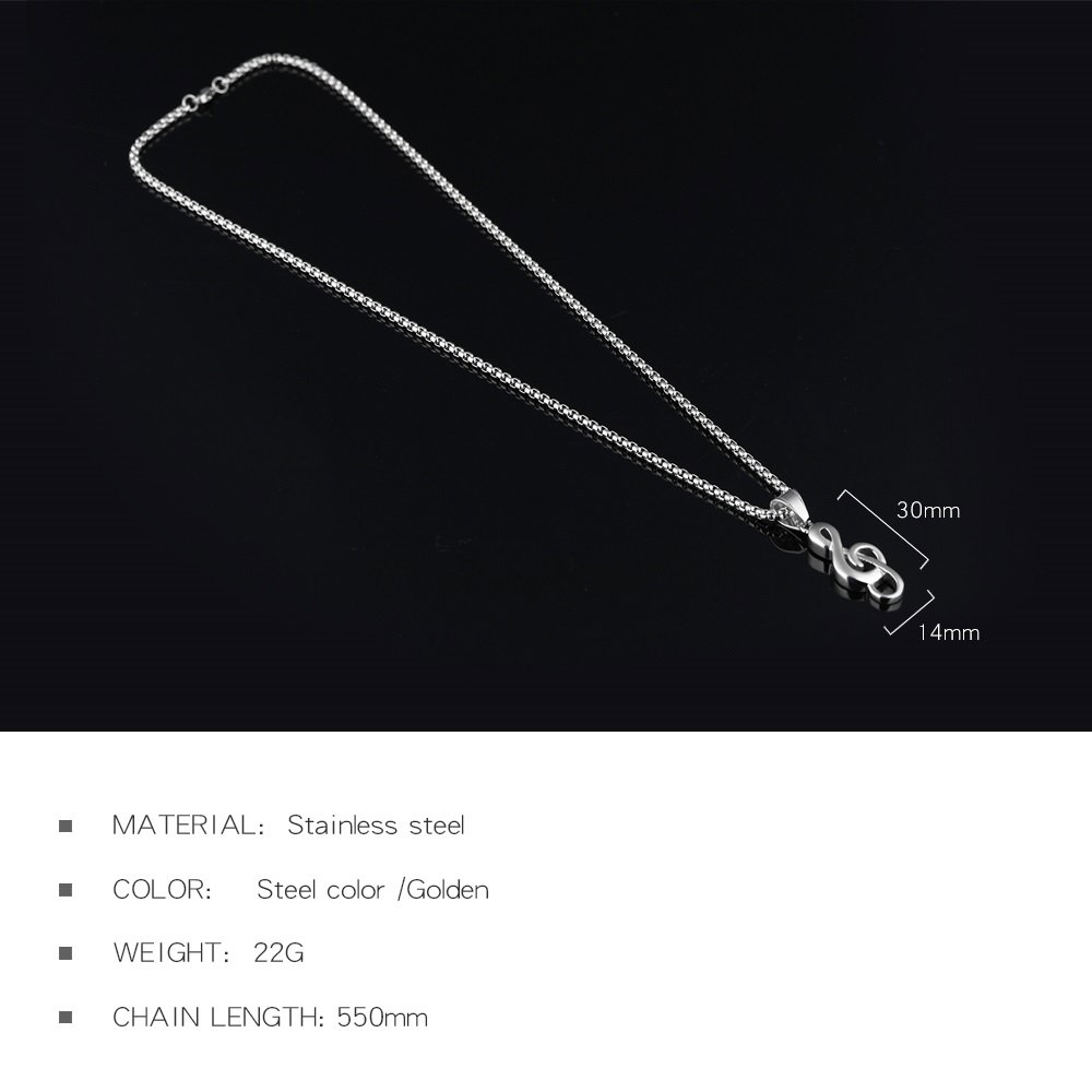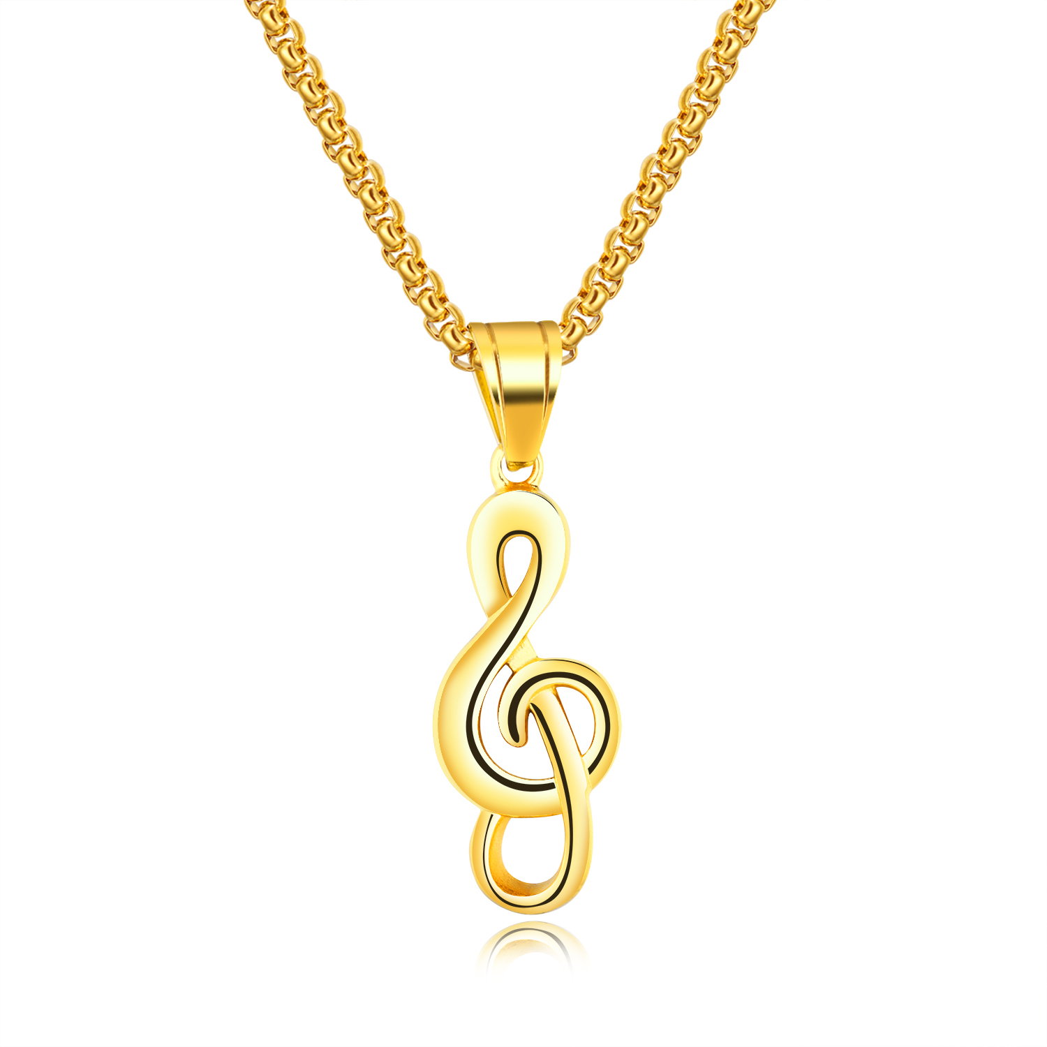 Colier inox cheia sol. Dimensiuni lant: Lungime 55 cm, Grosime 3 mm. Culoare: Auriu. Dimensiuni pandantiv: vezi schita in poze produs.