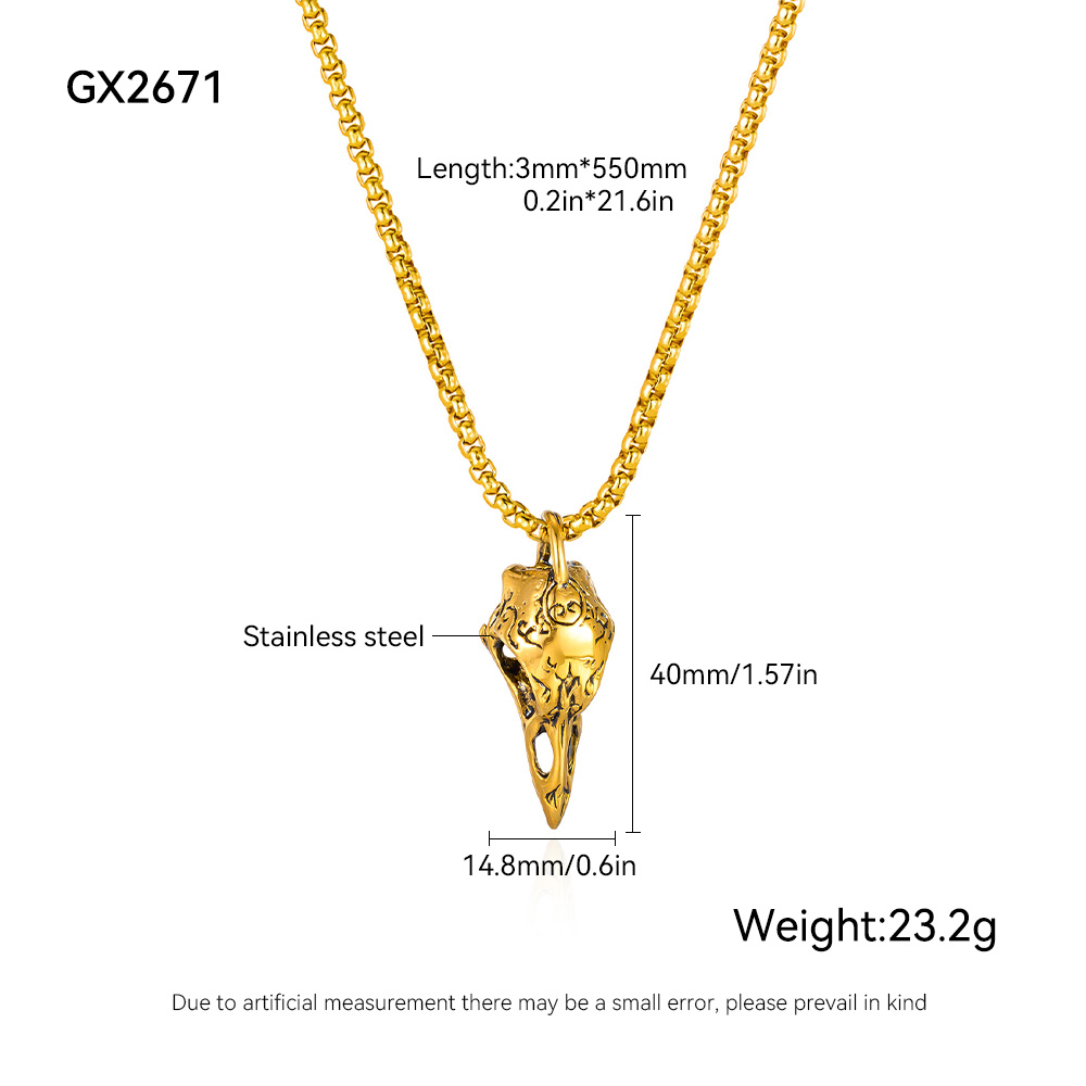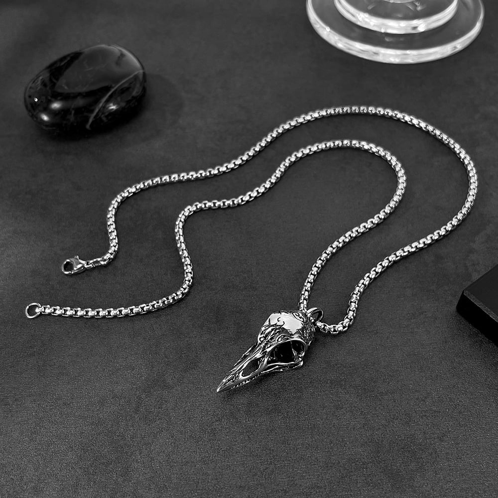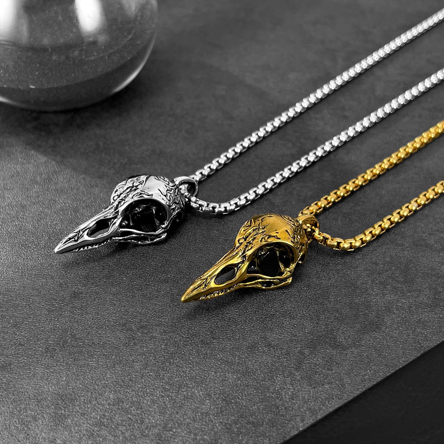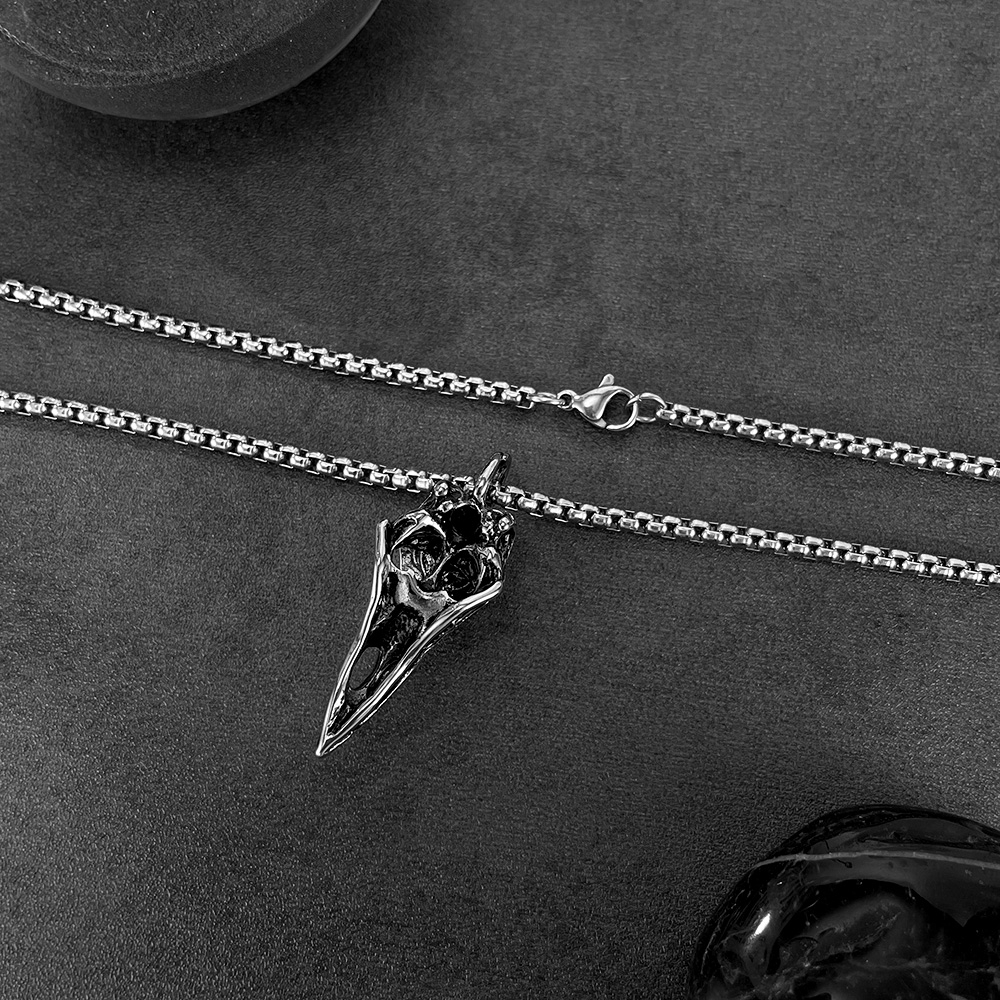 Acest colier inox cu pandantiv în formă de craniu de pasăre este o bijuterie cu un design îndrăzneț și simbolism profund. Inspirat de estetica gotică și de tradițiile mistice, pandantivul sugerează conexiunea dintre viață, moarte și renaștere – un simbol al transformării și al înțelepciunii interioare. Realizat cu detalii fine și un finisaj lucios, colierul emană o energie enigmatică, ideală pentru cei care iubesc stilul alternativ și bijuteriile cu semnificație. Poate fi purtat ca expresie a individualității sau oferit cadou unei persoane cu o personalitate puternică și nonconformistă.
