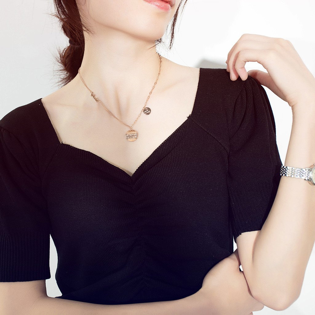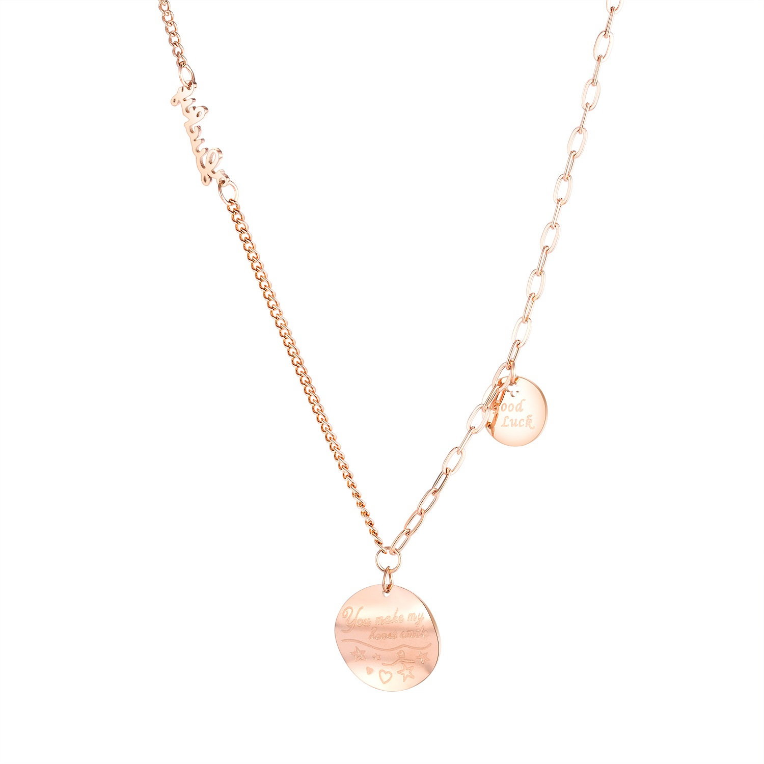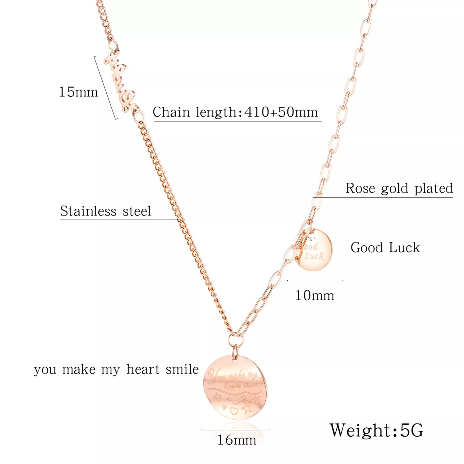 Dimensiuni: Lungime lant: 41 cm + 5 cm (ajustabil). Diametru pandantiv mare: 16 mm, Diametru pandantiv mic: 10 mm.