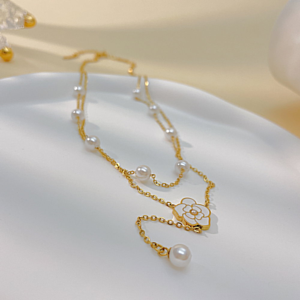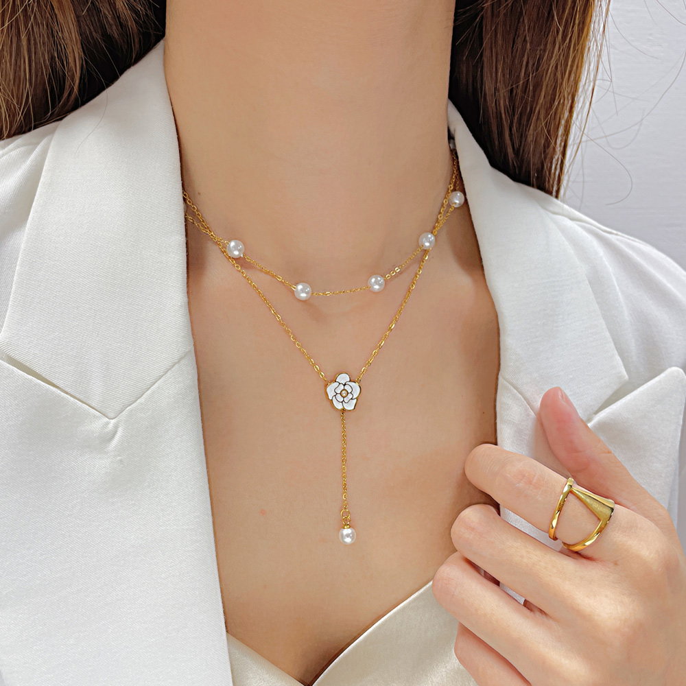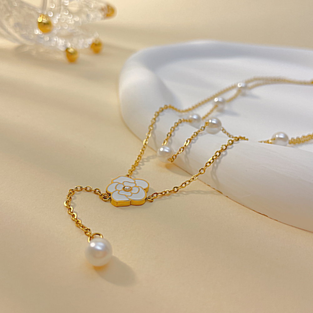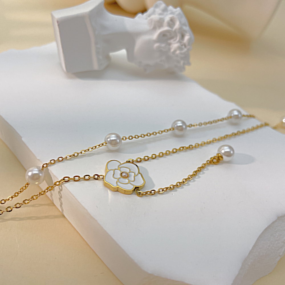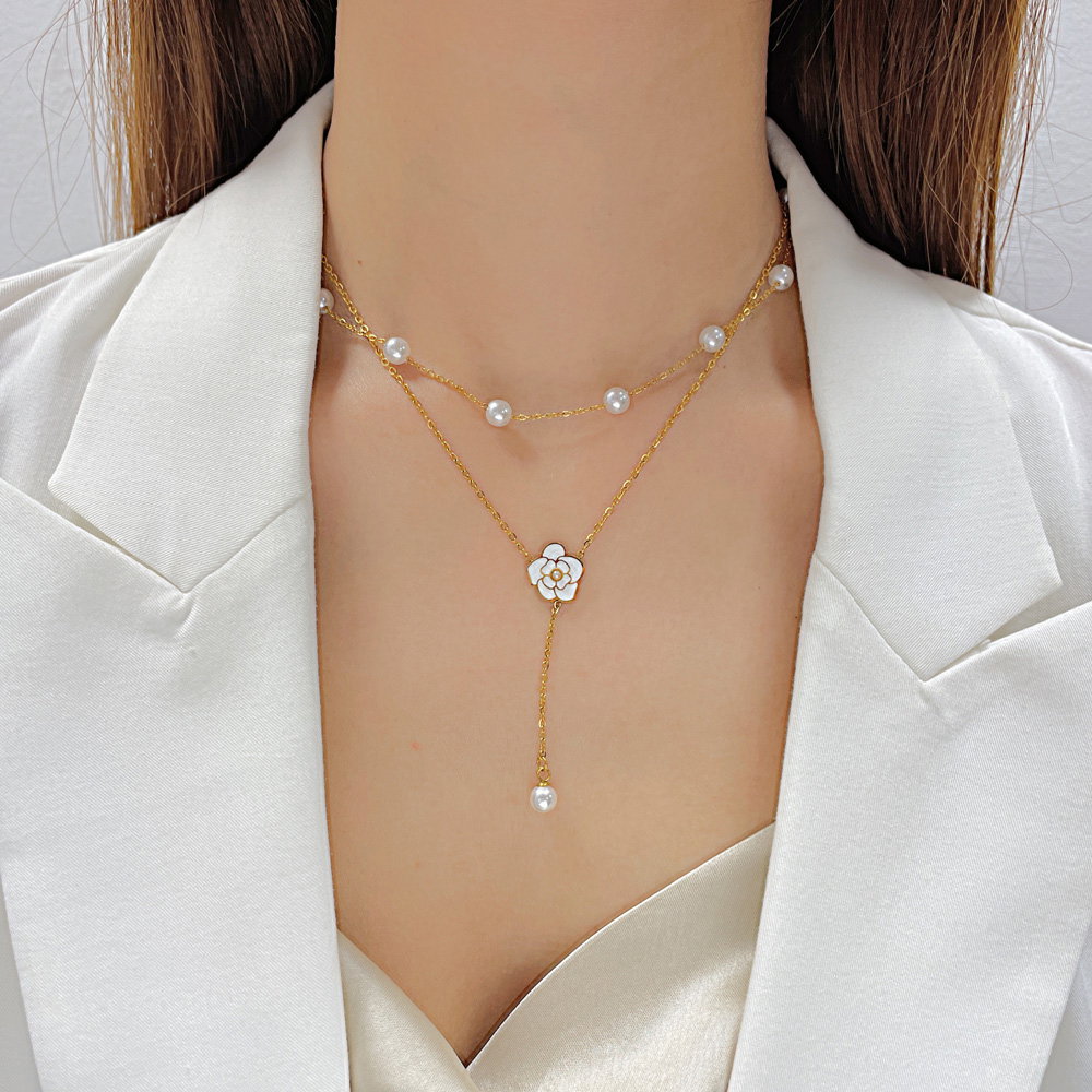 Colier inox dublu cu perle si floare