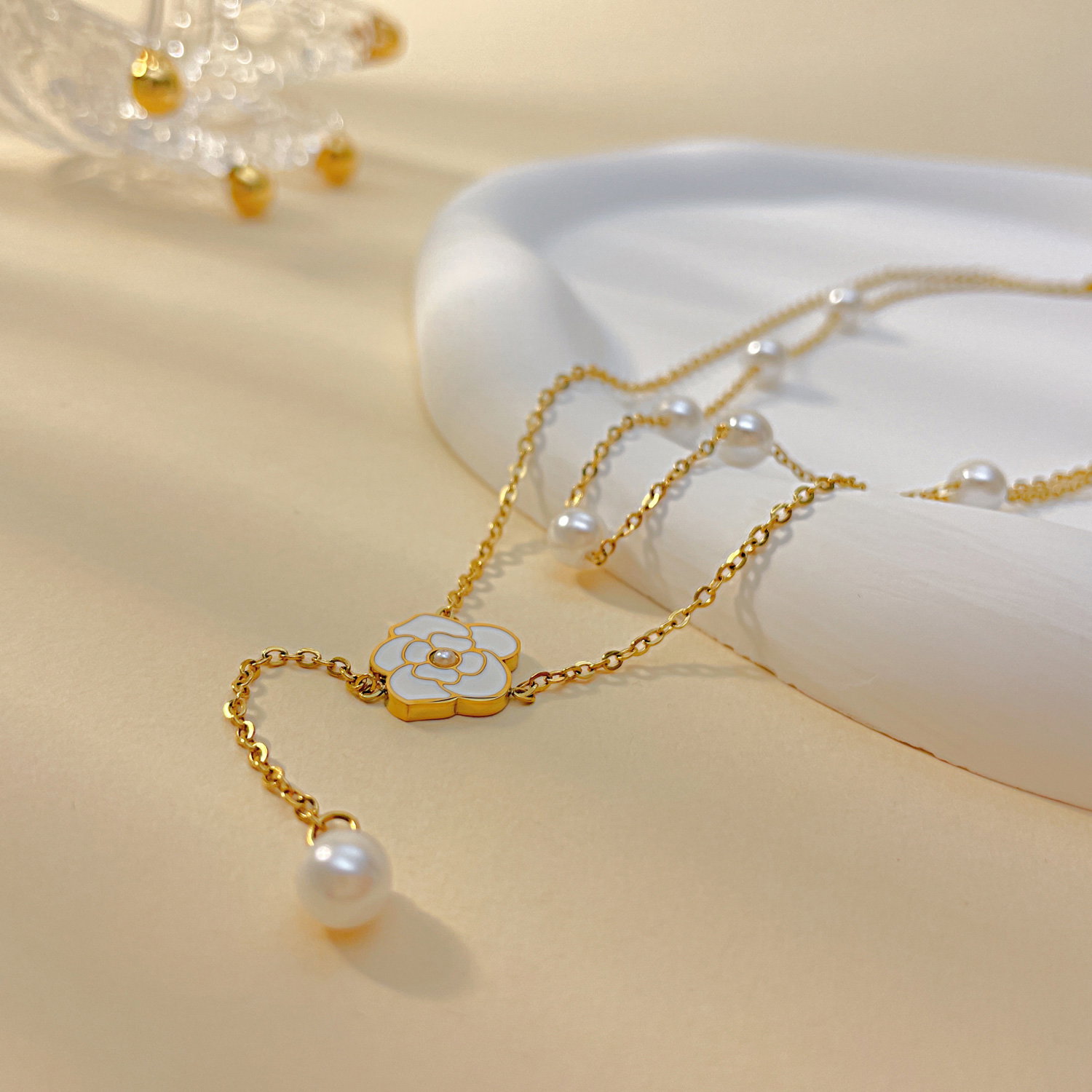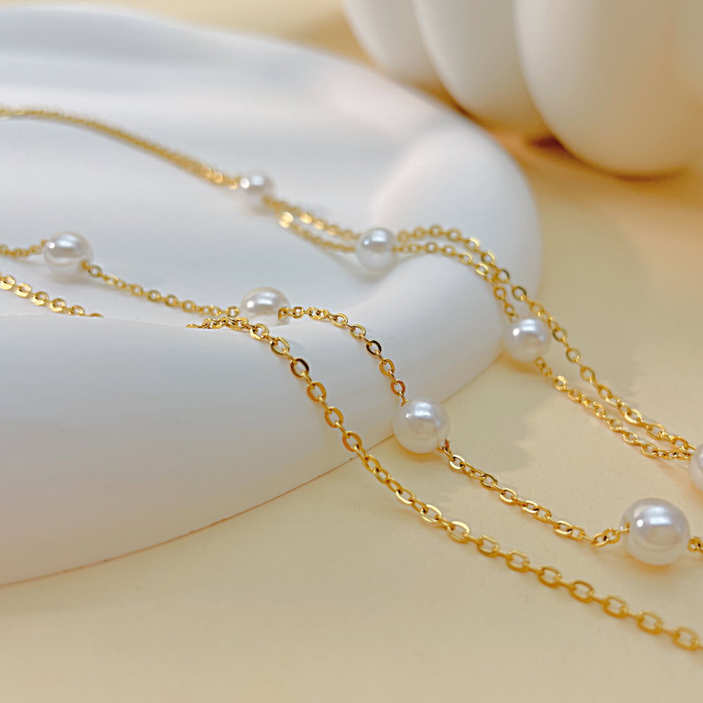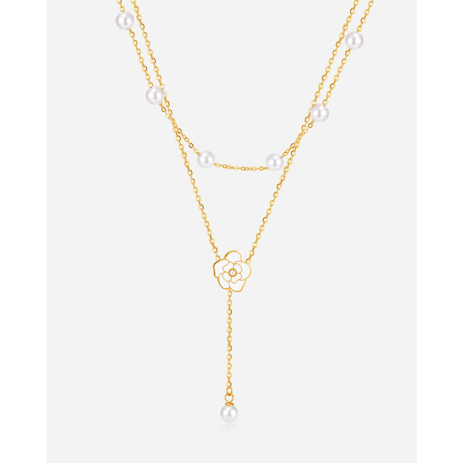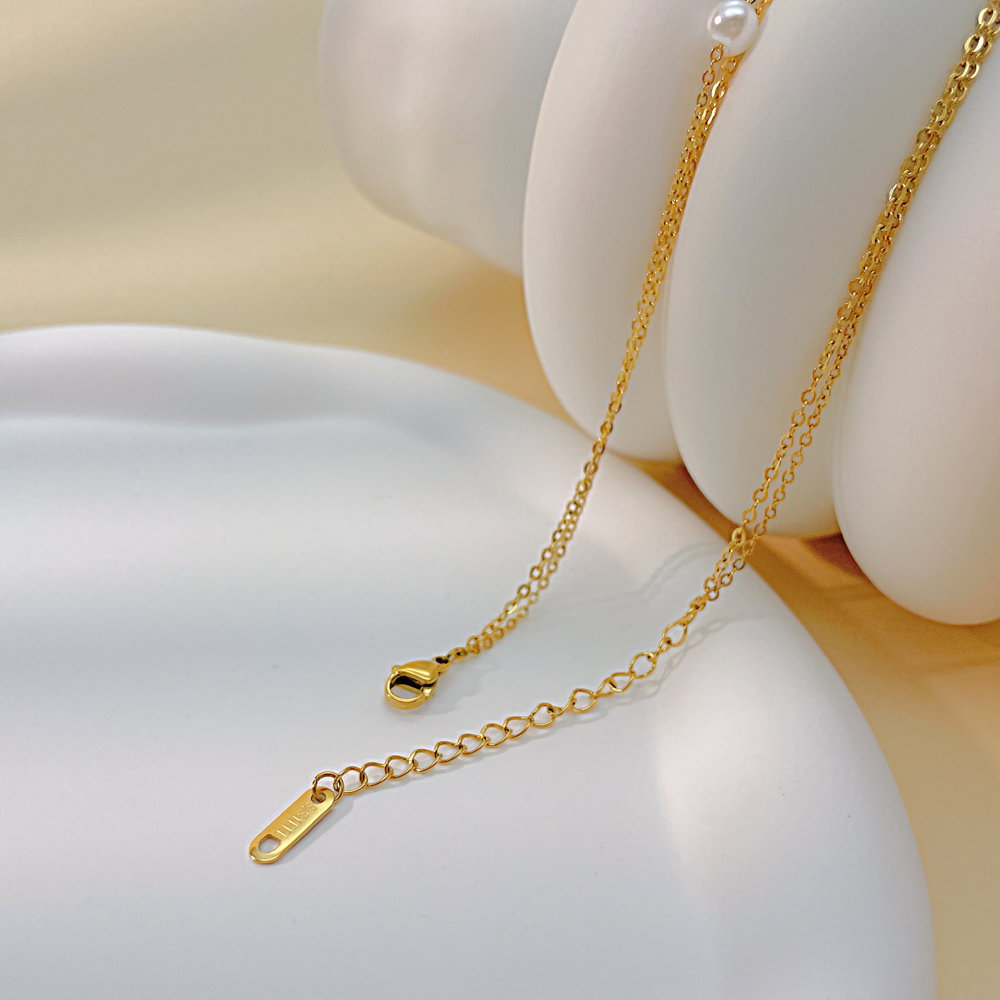 Colier inox dublu cu perle si floare
