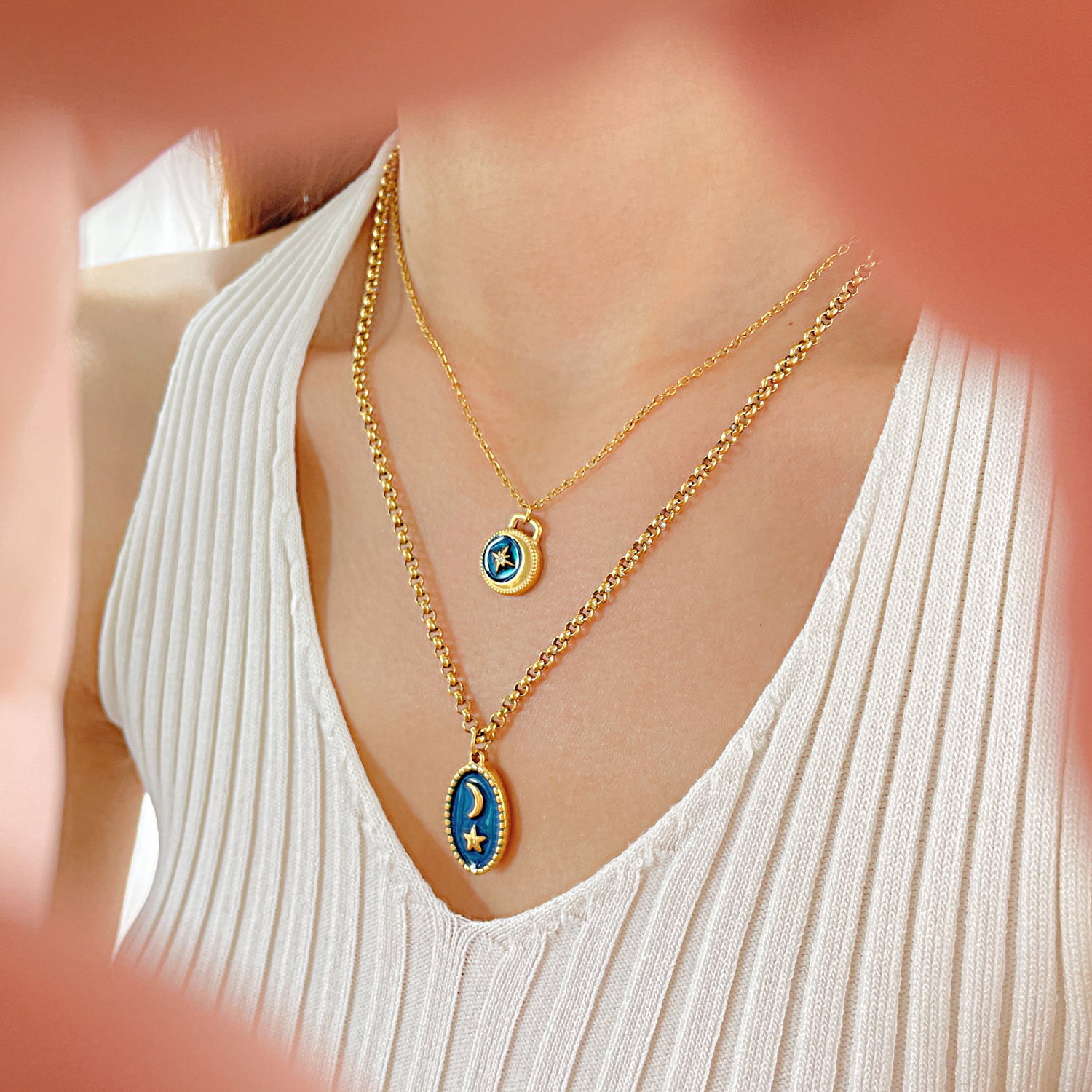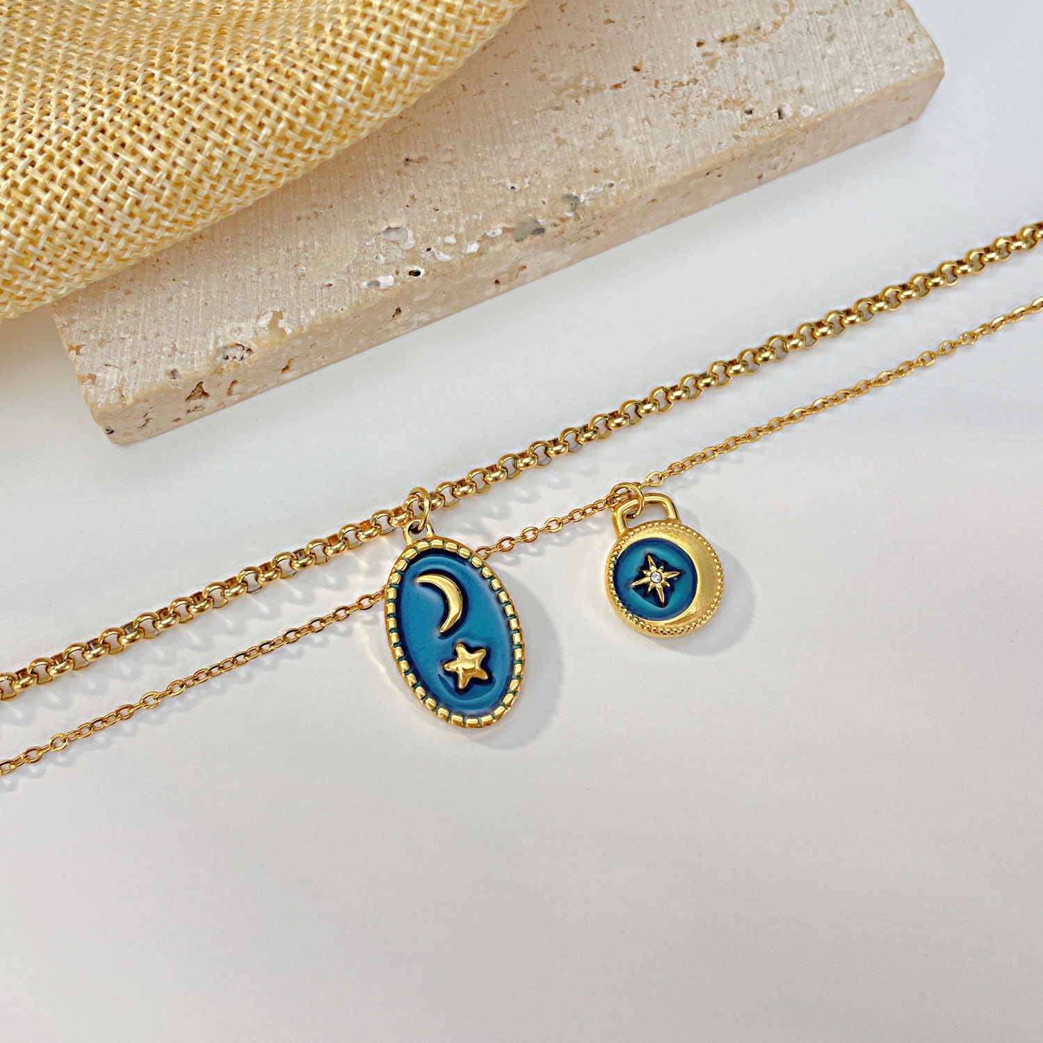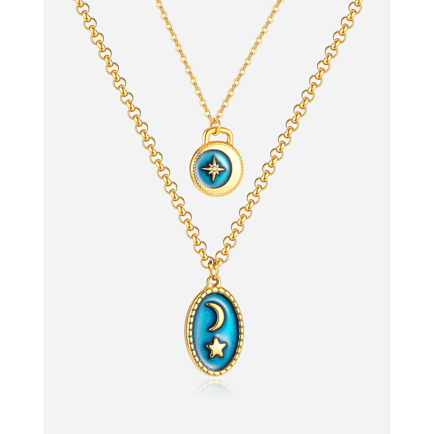Dimensiuni: Pandantiv: Mic: 12 mm x 15 mm, Mare 13 x 22 mm, Lant: 42 + 6,5 cm